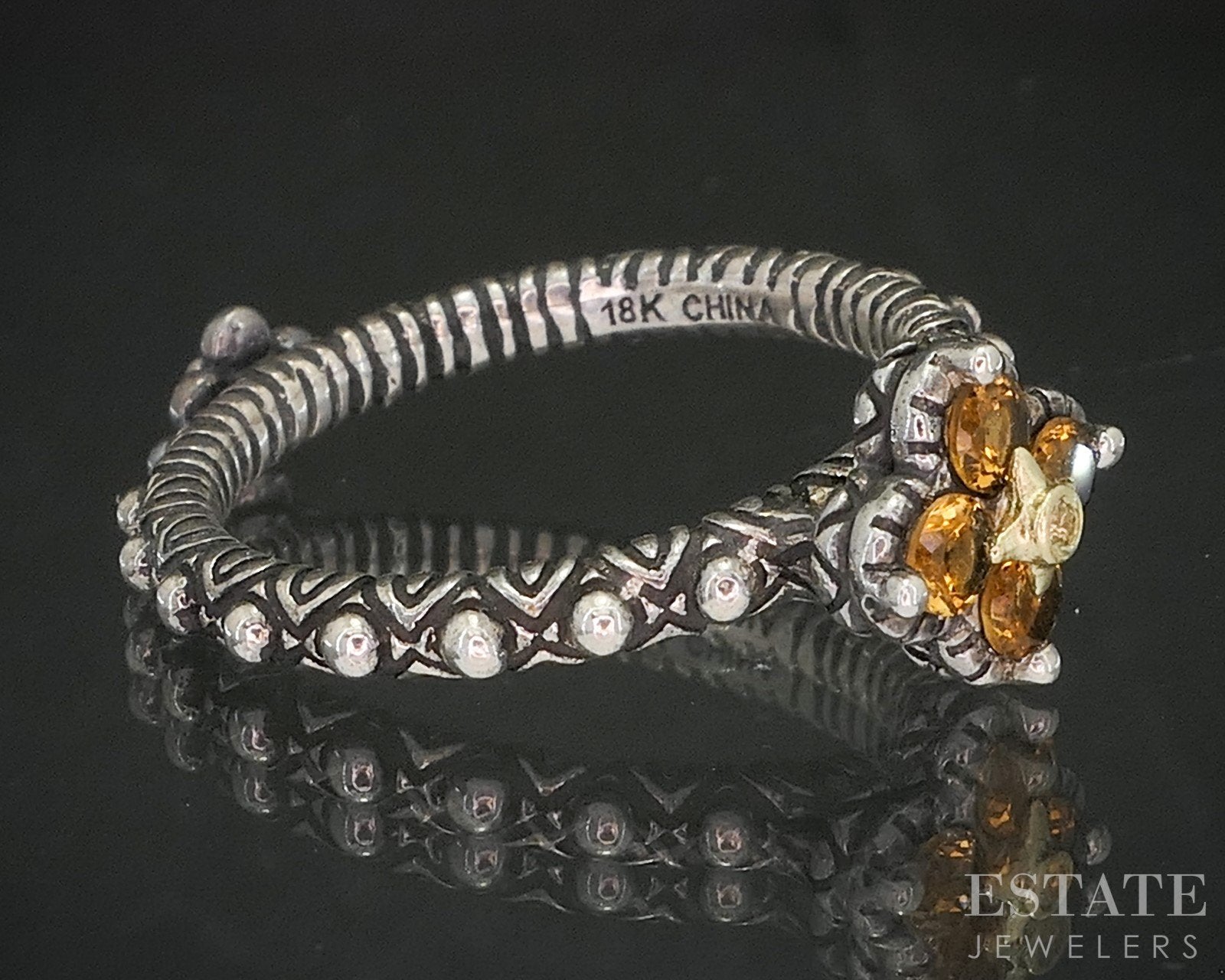 18k & Sterling Barbara Bixby Citrine White Topaz Lotus Ladies Ring 4.6g i20394