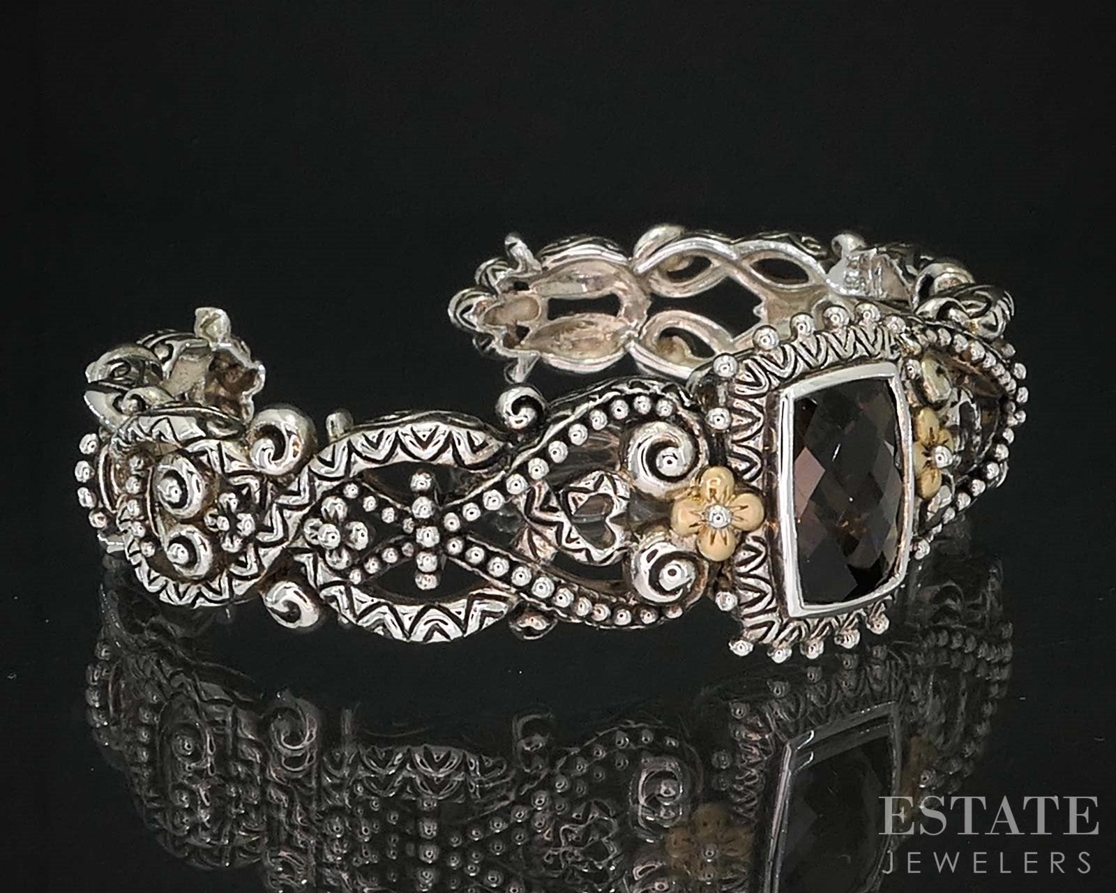 18k & Sterling Barbara Bixby Natural Smoky Quartz Cuff Bracelet 48.5g i19744