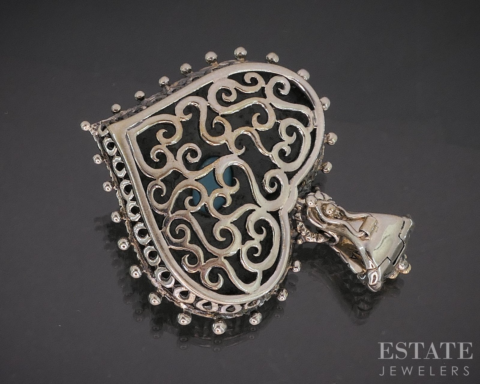 18k & Sterling Barbara Bixby Open Heart Turquoise Ladies Pendant 16.6g i20449
