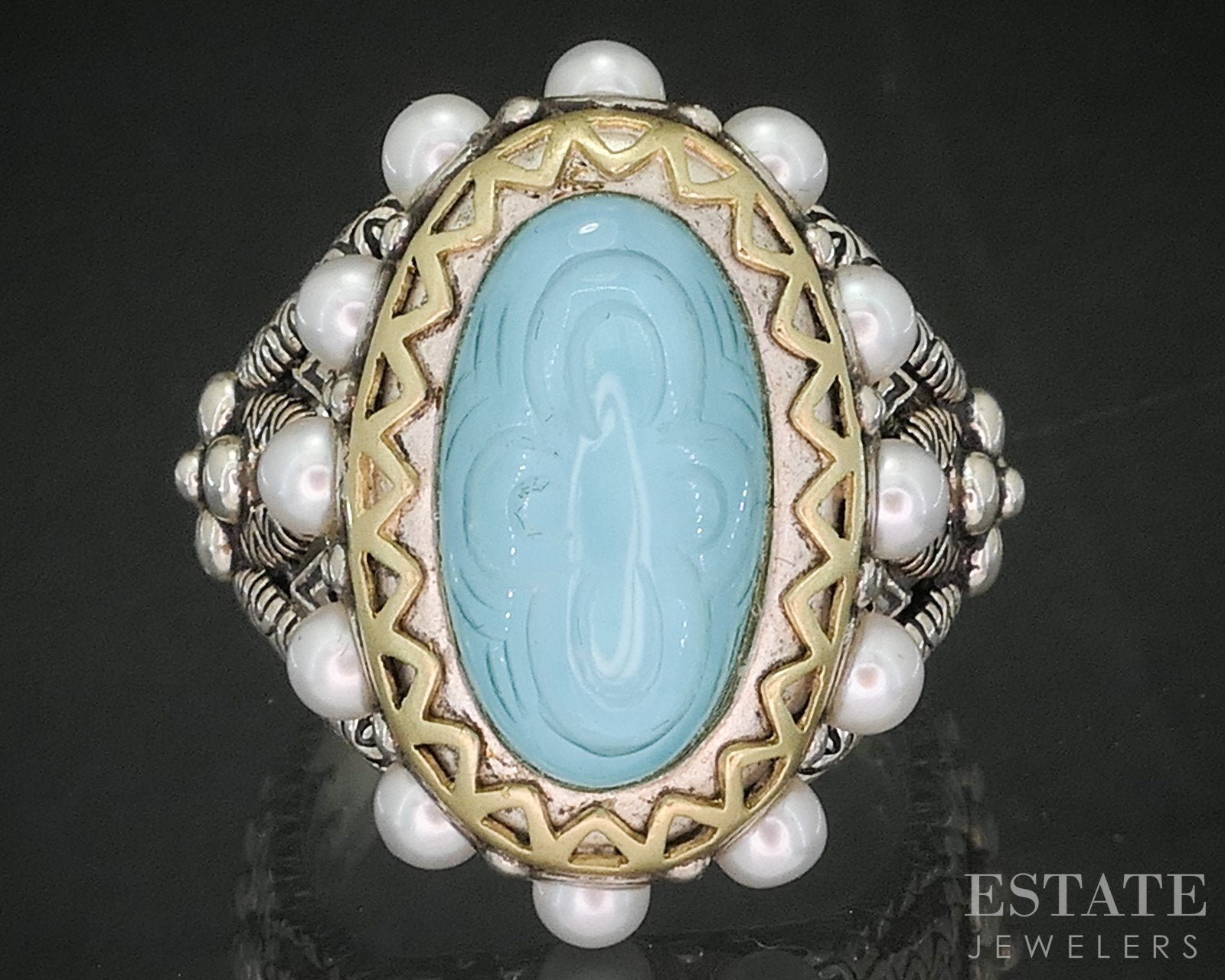 18k & Sterling Barbara Bixby Turquoise Doublet & Pearl Ladies Ring 13.4g p18582
