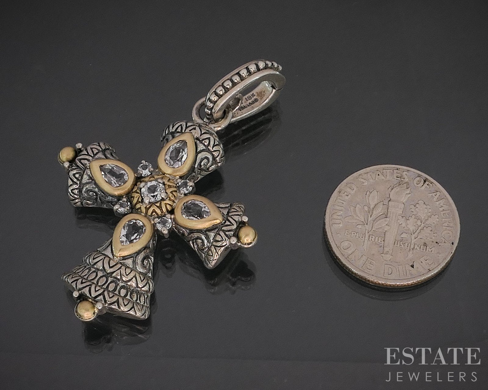 18k & Sterling Barbara Bixby White Topaz Cross Ladies Pendant 11.1g i20445