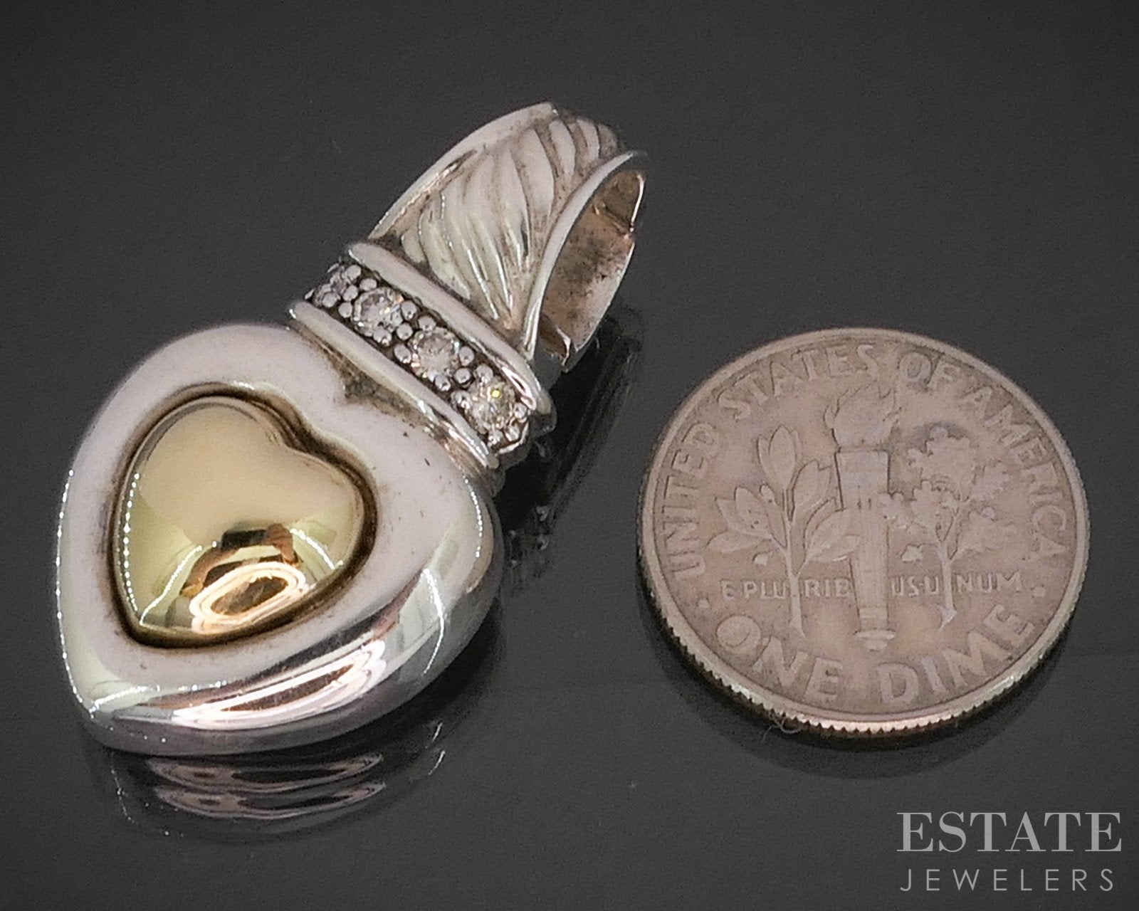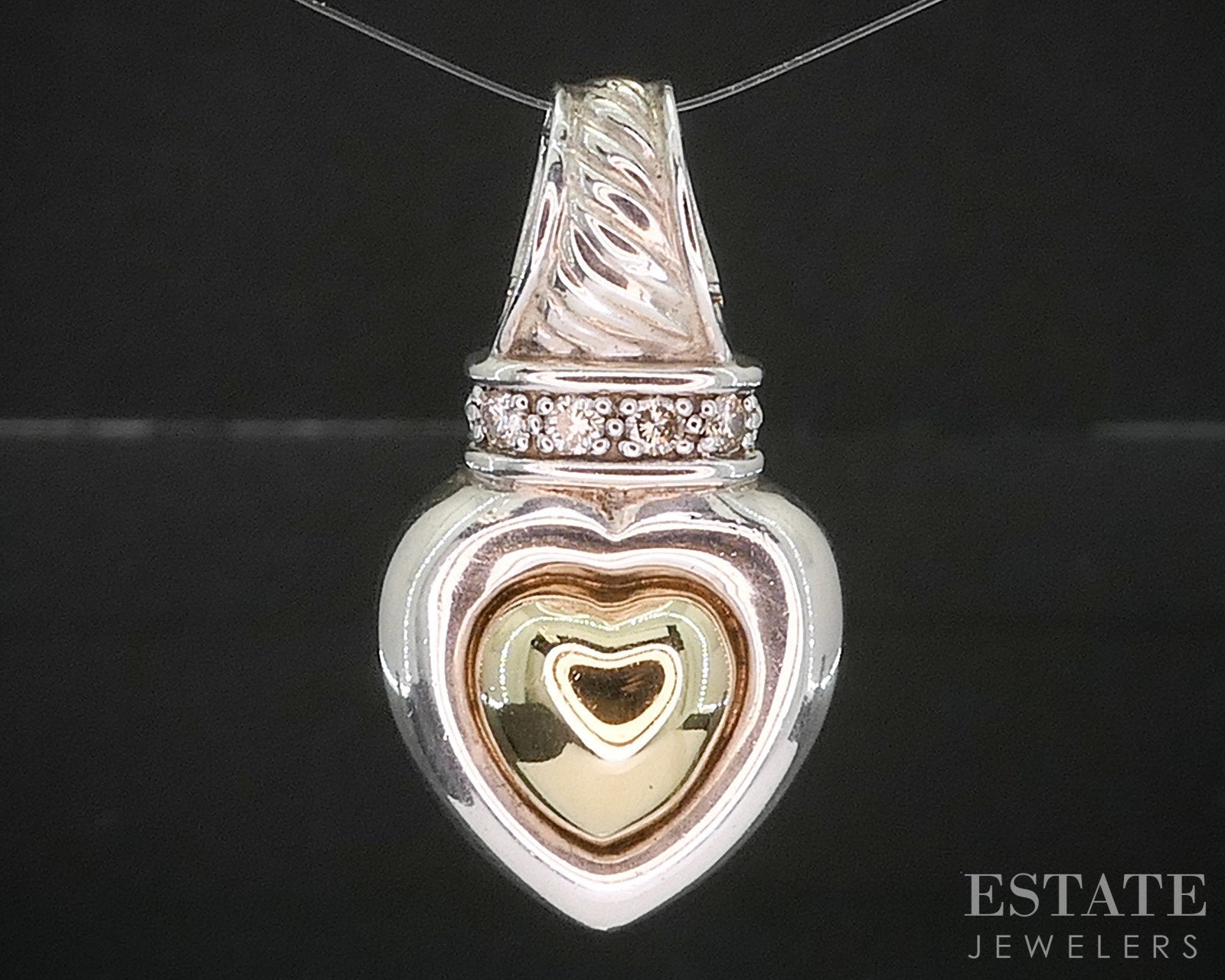 18k & Sterling David Yurman Heart Natural Diamond Enhancer Pendant 9.4g p15367