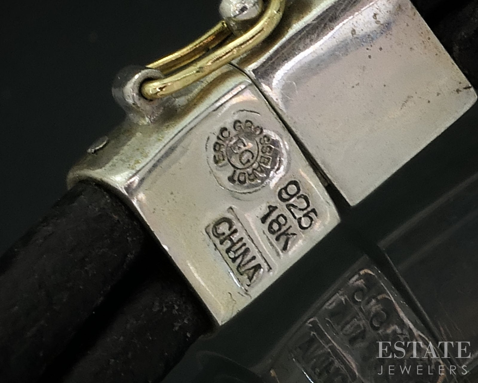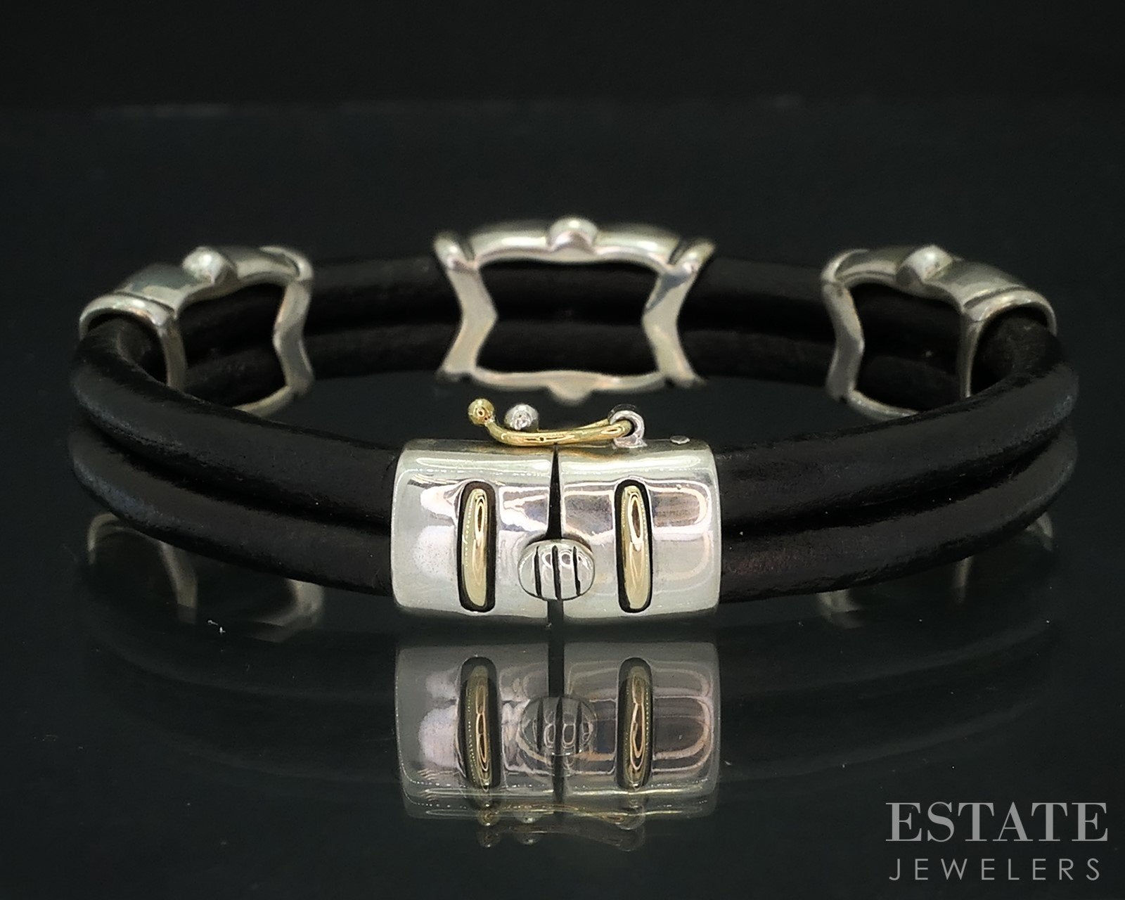 18K & Sterling Eric Grossbardt Onyx MOP Inlay Leather Bracelet 26.4g i18159