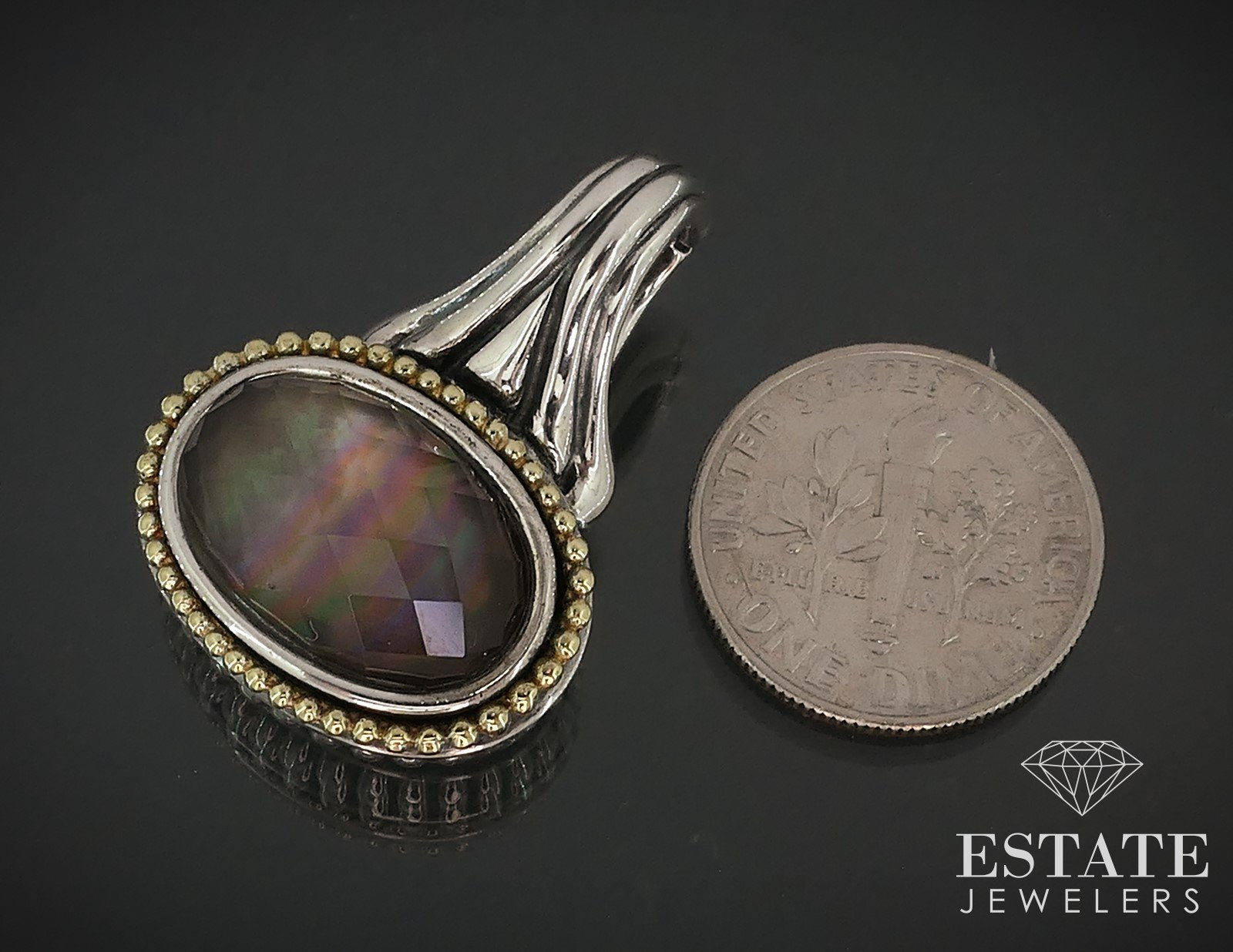 18k & Sterling Lagos Caviar Abalone Quartz Doublet Ladies Pendant 10.3g i17784