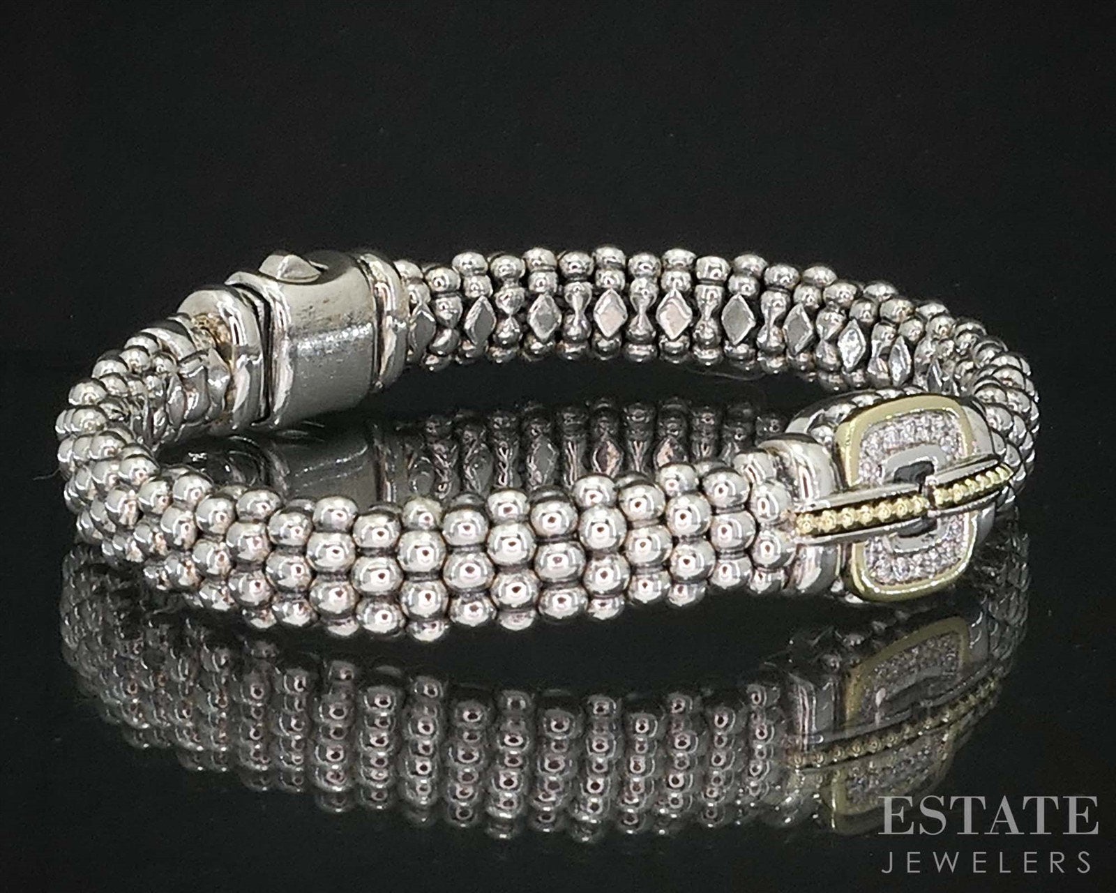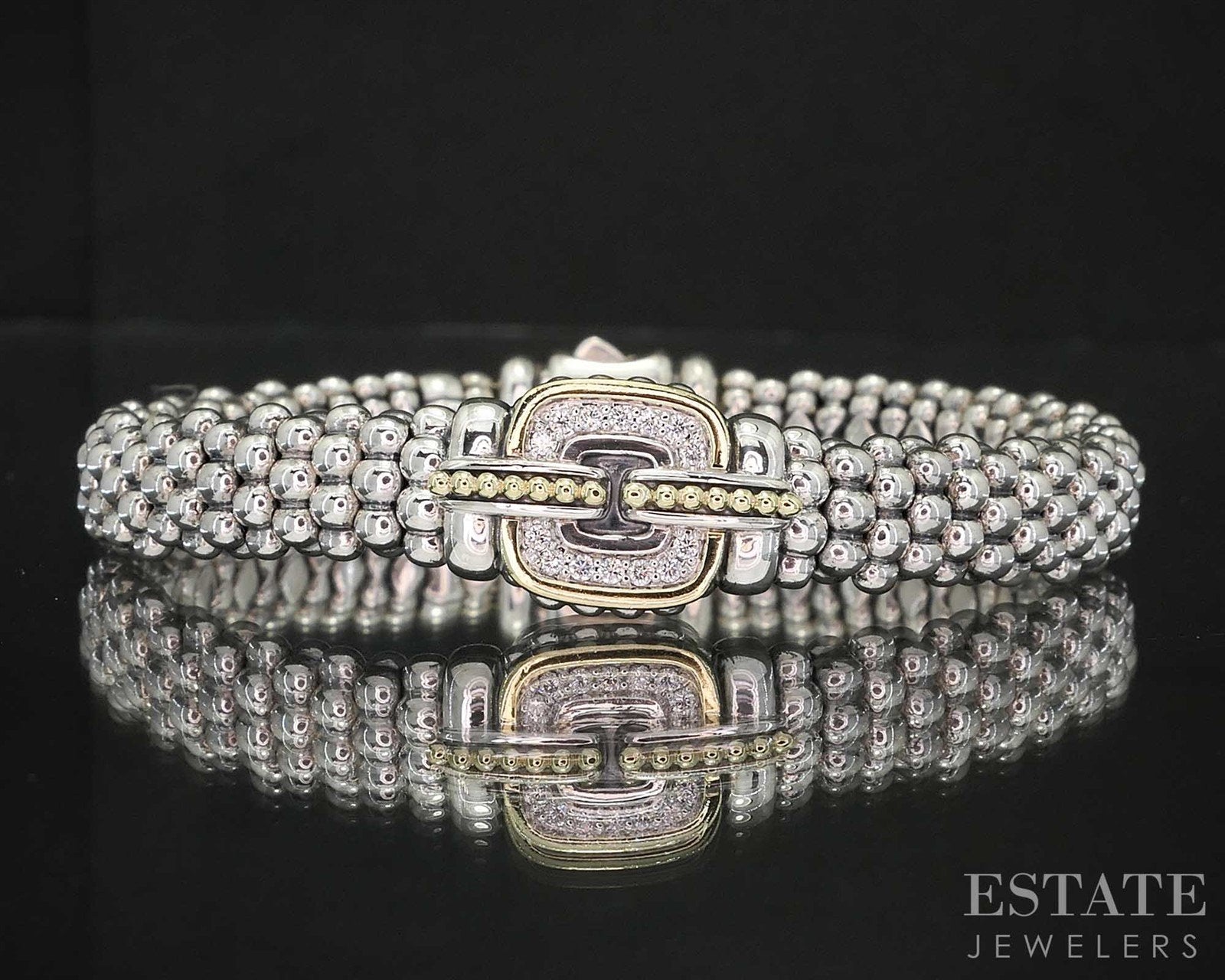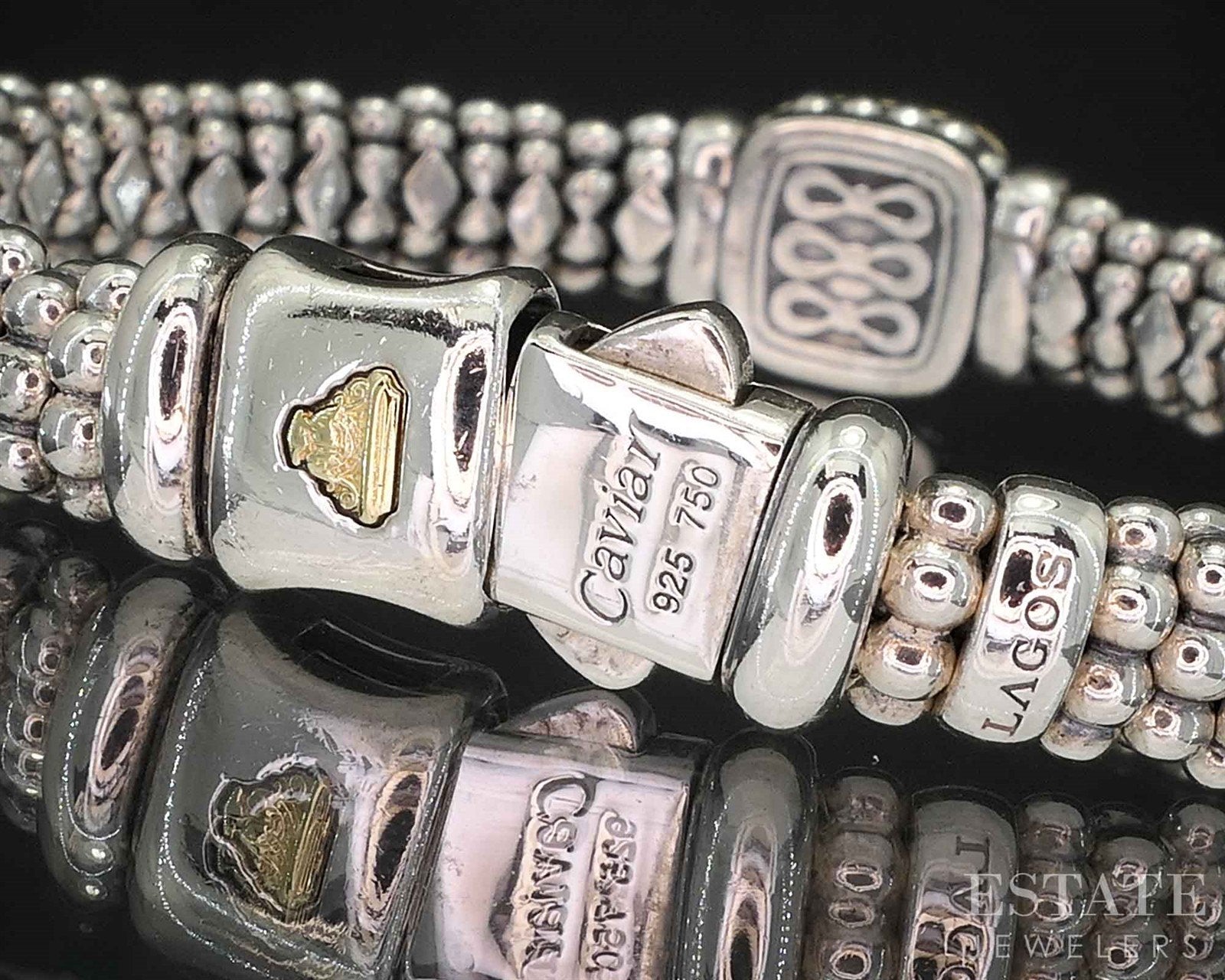 18k & Sterling LAGOS Caviar Natural Diamond Beaded Bracelet 50.8g i19952
