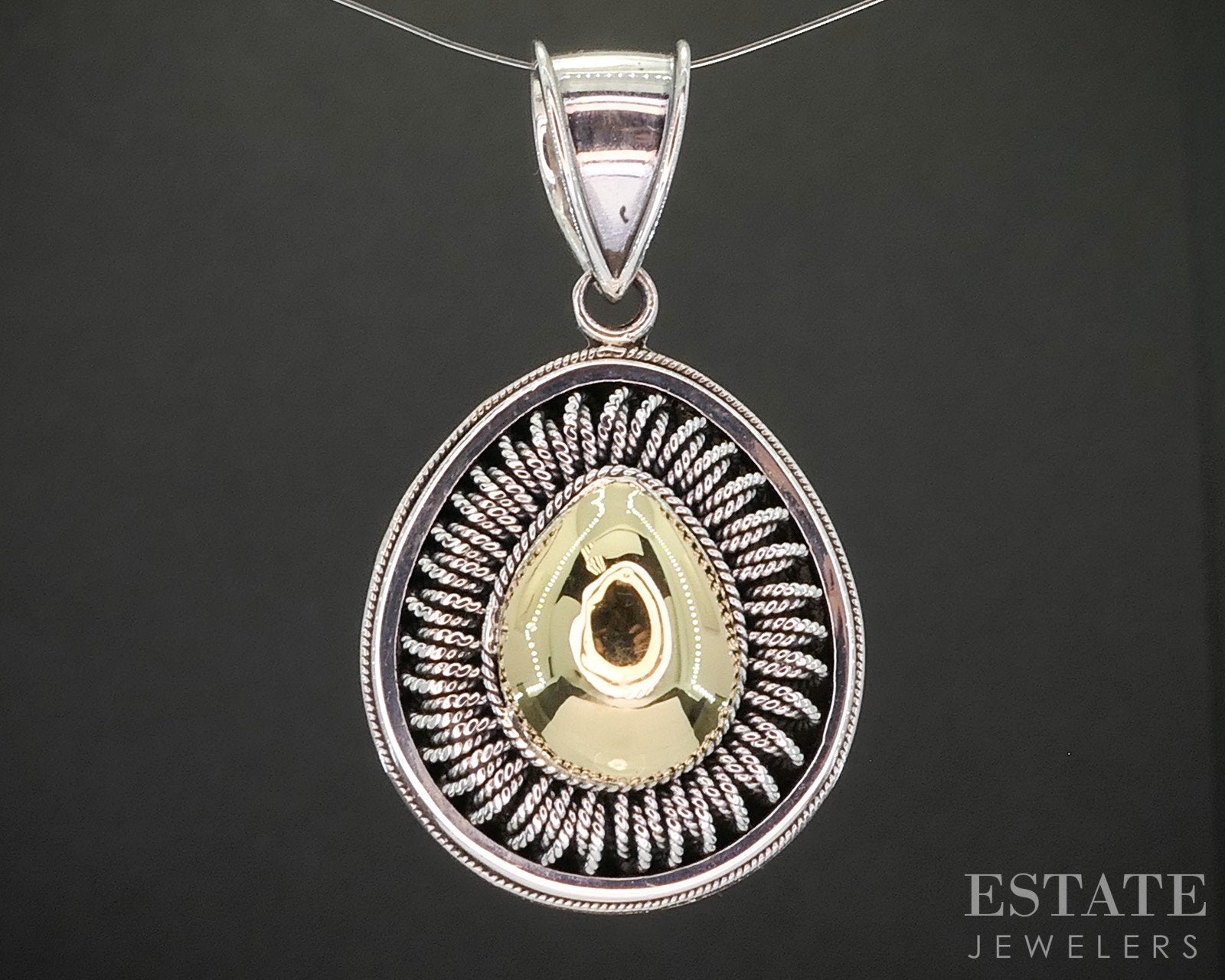 Additional Info: Lovely ladies teardrop pendant a domed 18k yellow gold middle and silver Bali style wire.