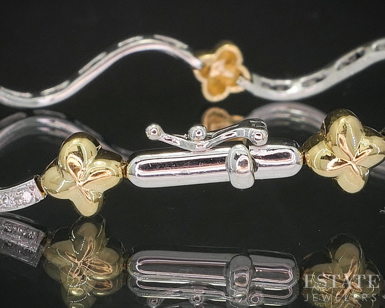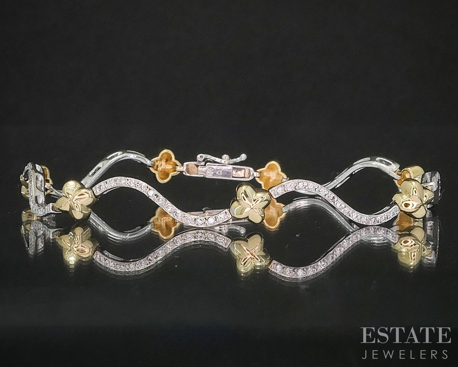 18k Two Tone Gold Natural .78ctw Diamond Tennis Bracelet 10.2g 7.5"L p15391