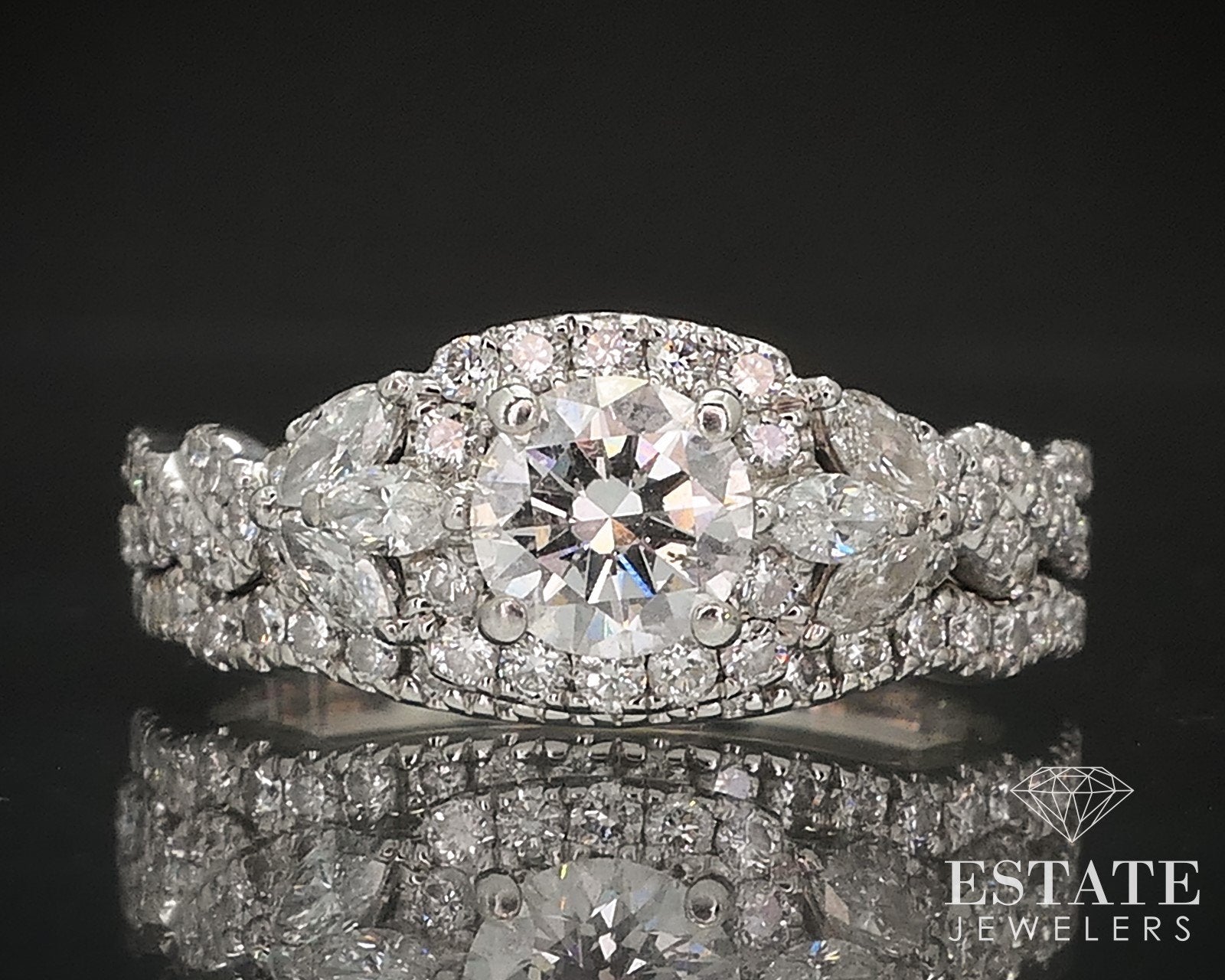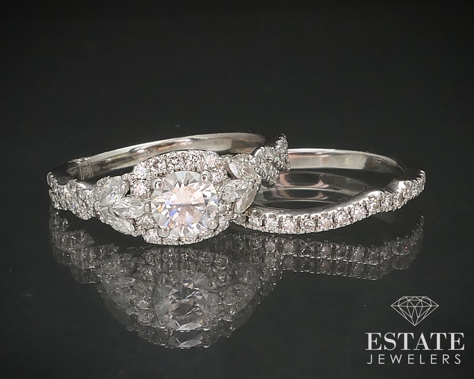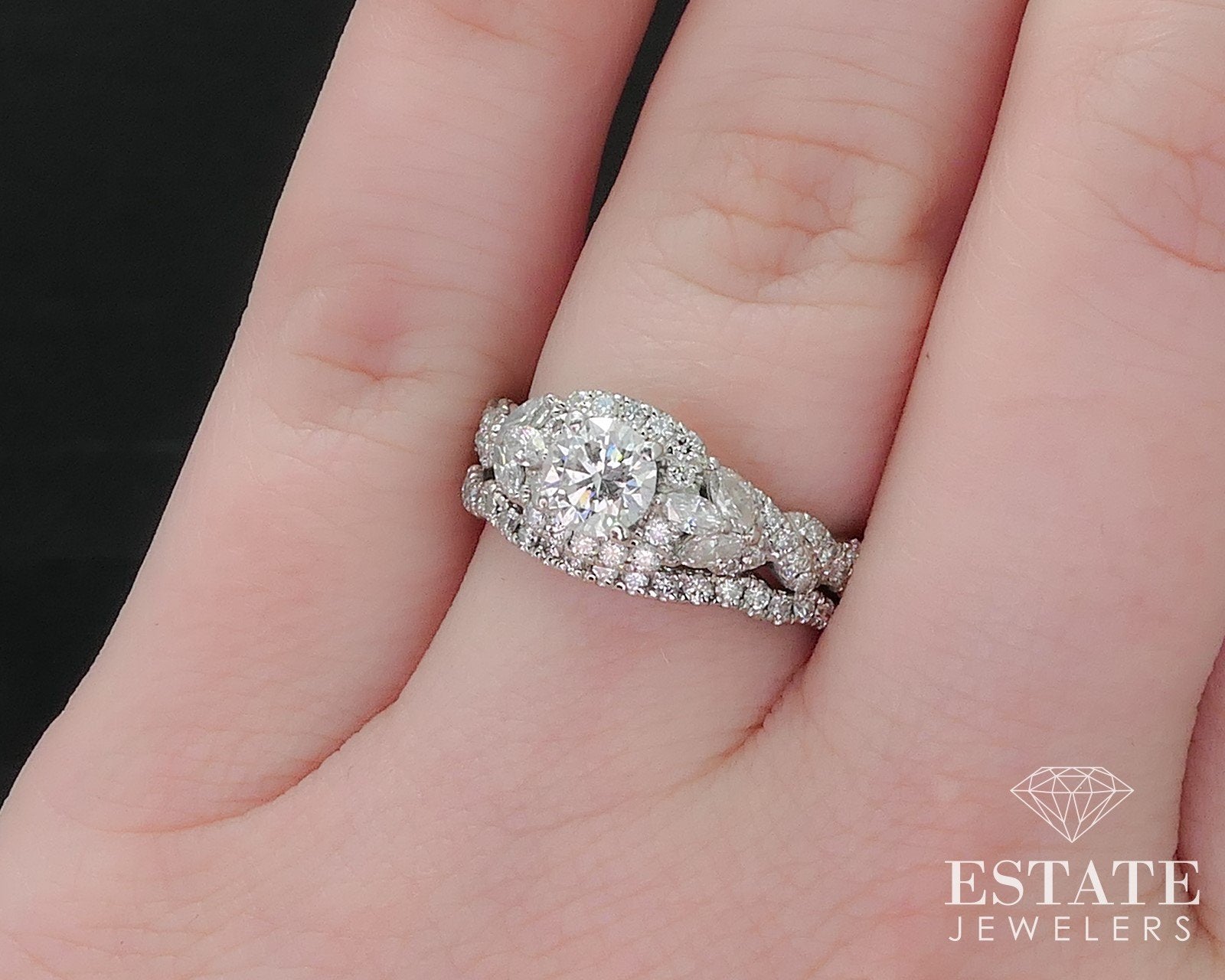 18k White Gold Natural 1.32ctw Diamond Monique Lhuillier Wedding Set 6.1g i17484