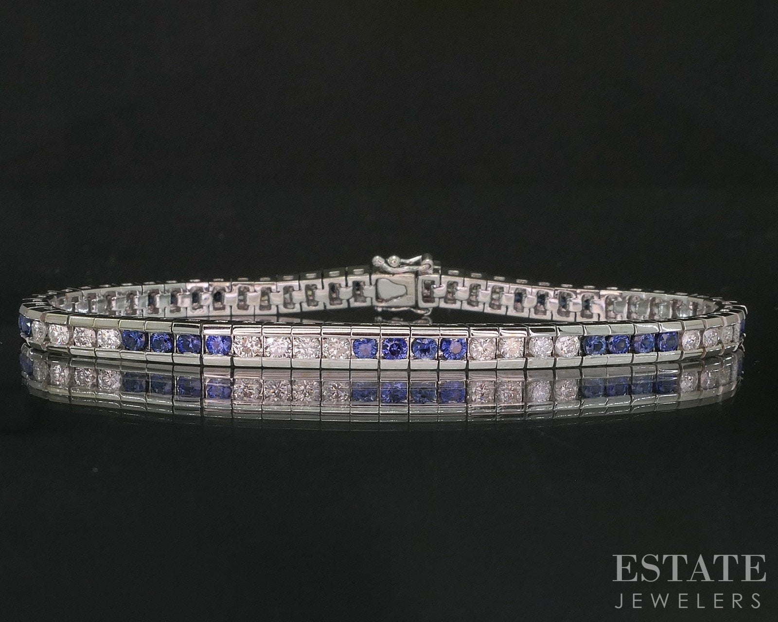 18k White Gold Natural Blue Sapphire & Diamond Tennis Bracelet 18g 6.75"L i20192