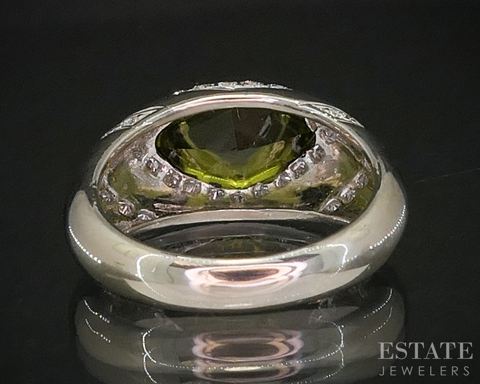 18k White Gold Natural Green Tourmaline & Diamond Ladies Ring 8.1g i20416