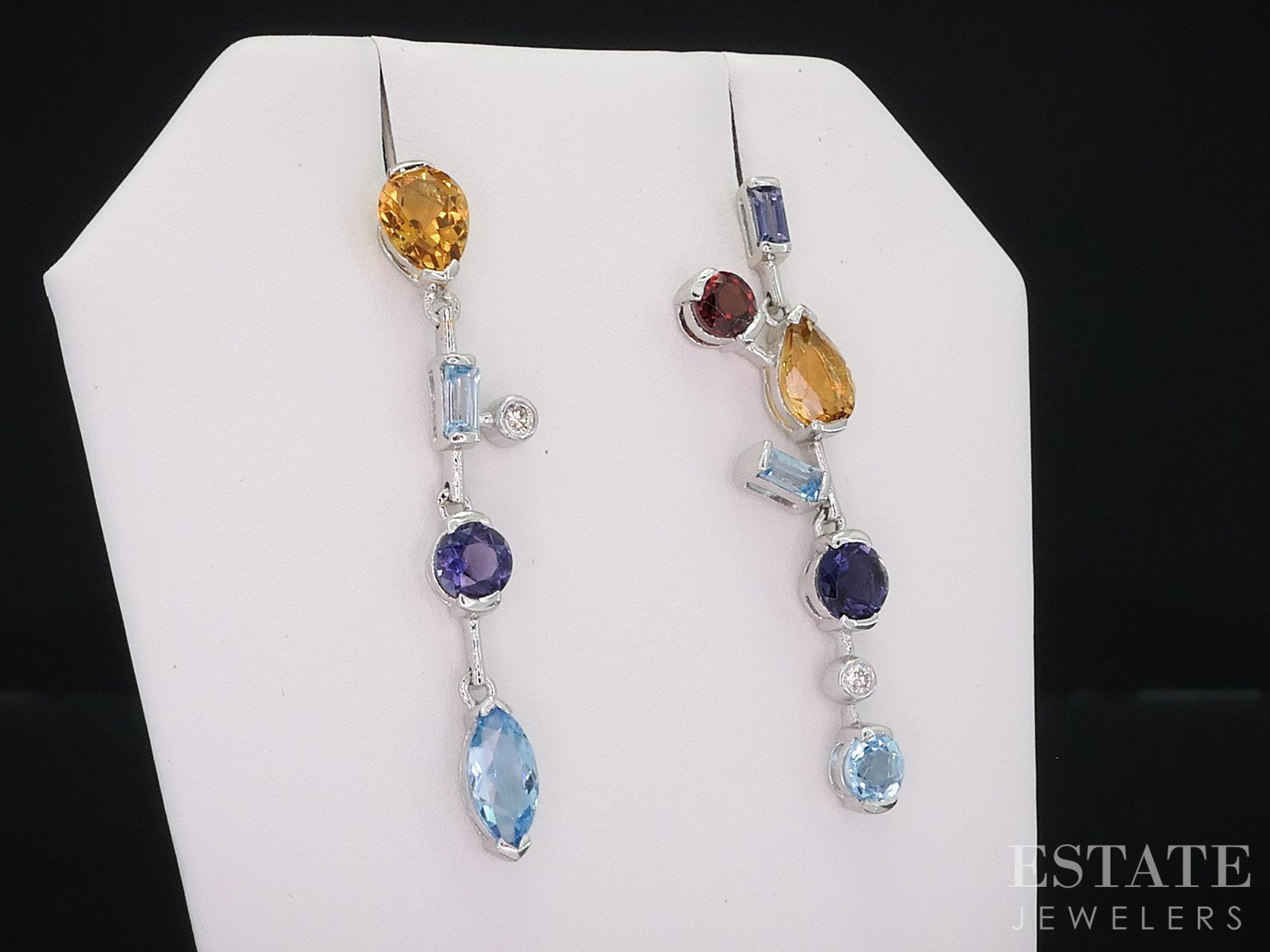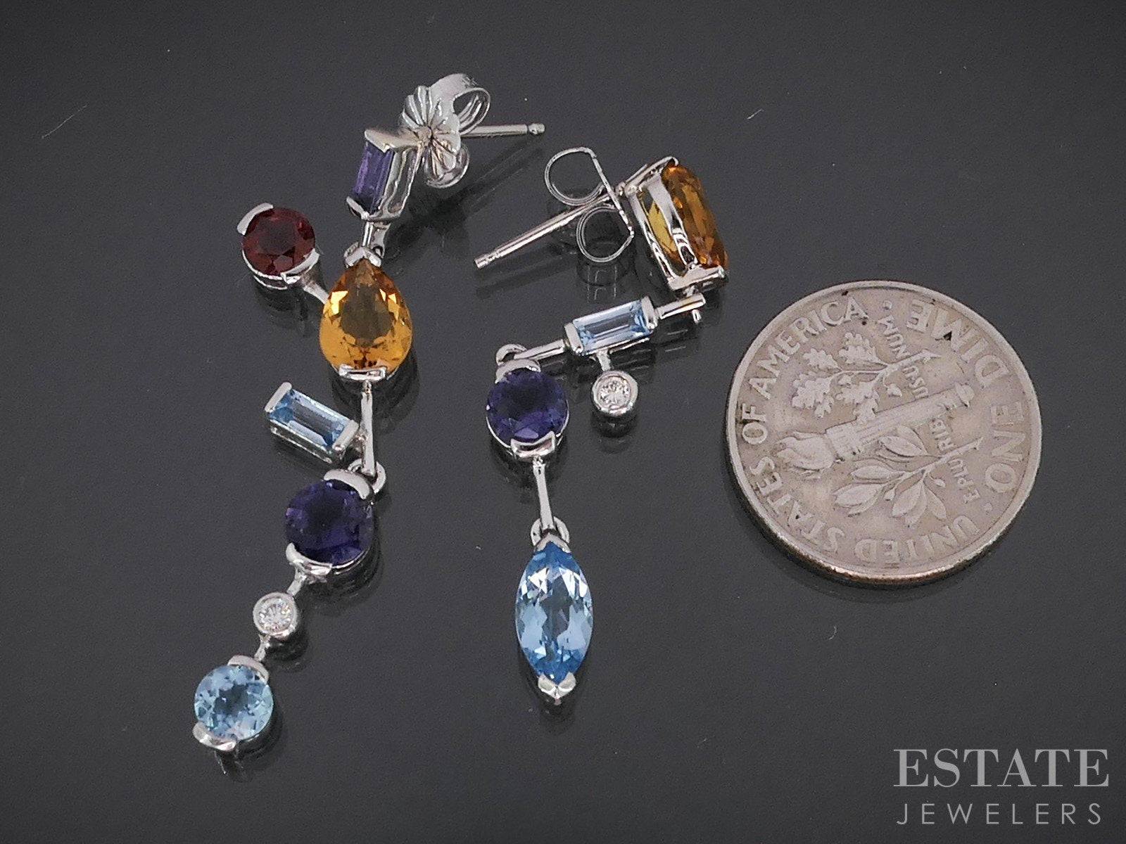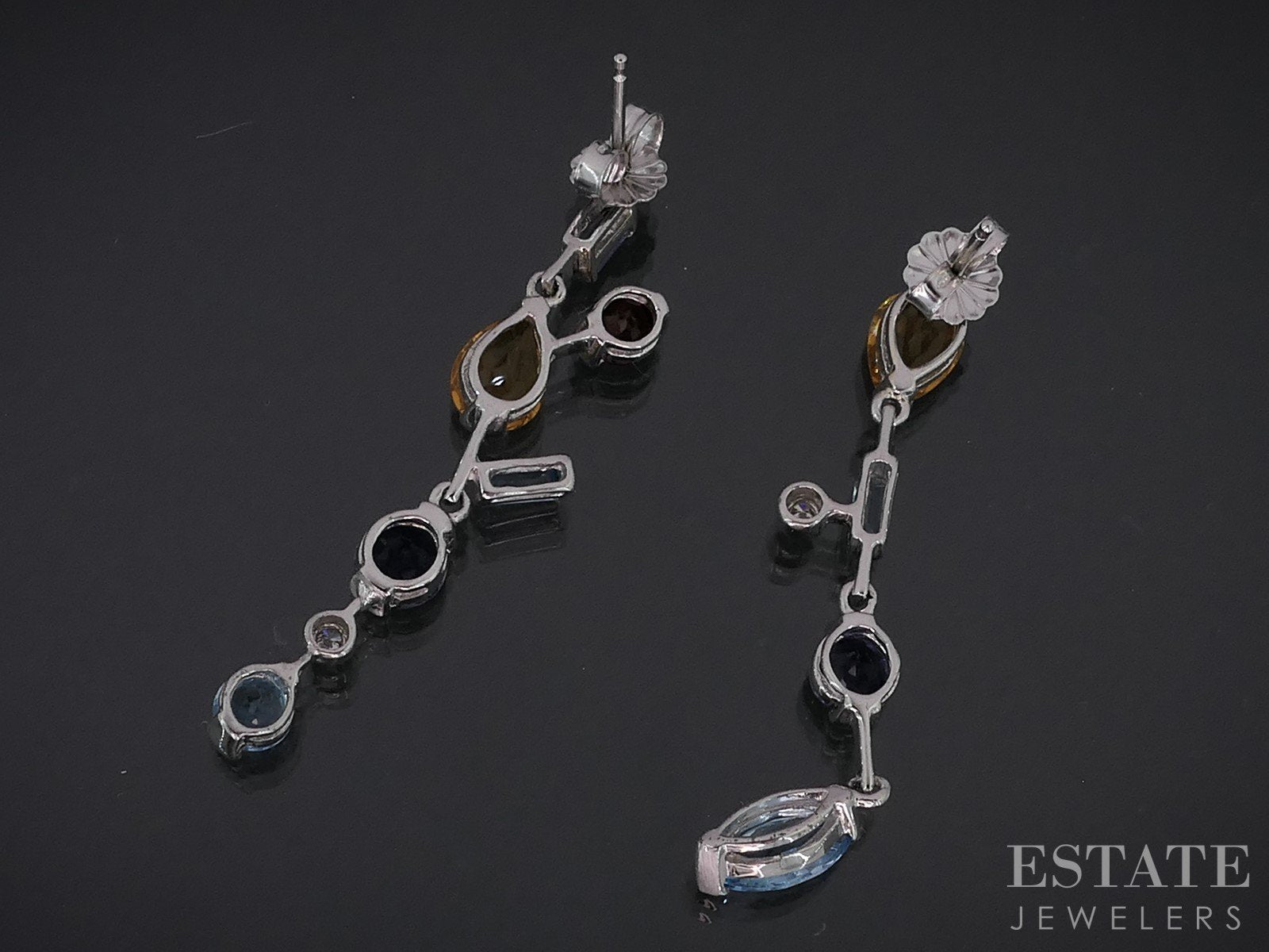18k White Gold Natural Multi Gem & Diamond Dangle Earrings 4.2g i18978