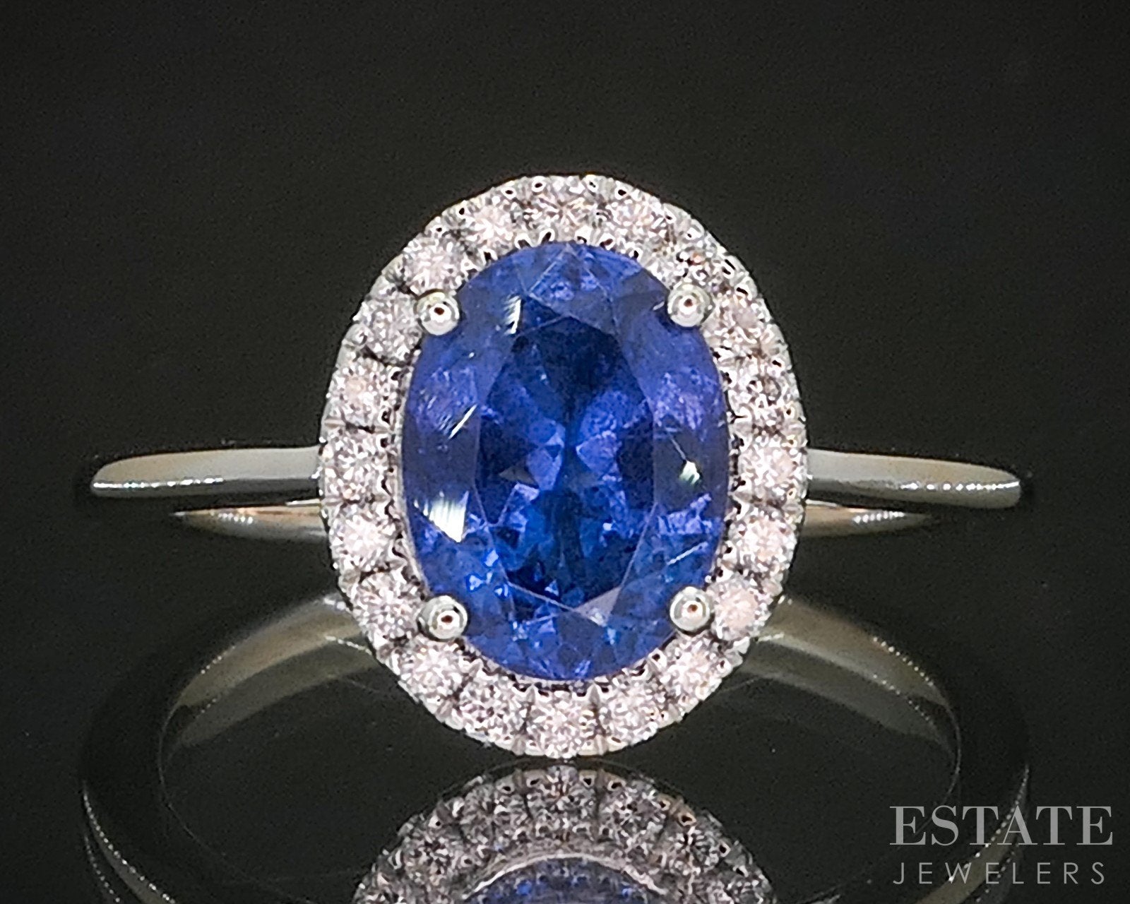 18k White Gold Oval Natural Tanzanite & Diamond Halo Ladies Ring 2.8g p16650b