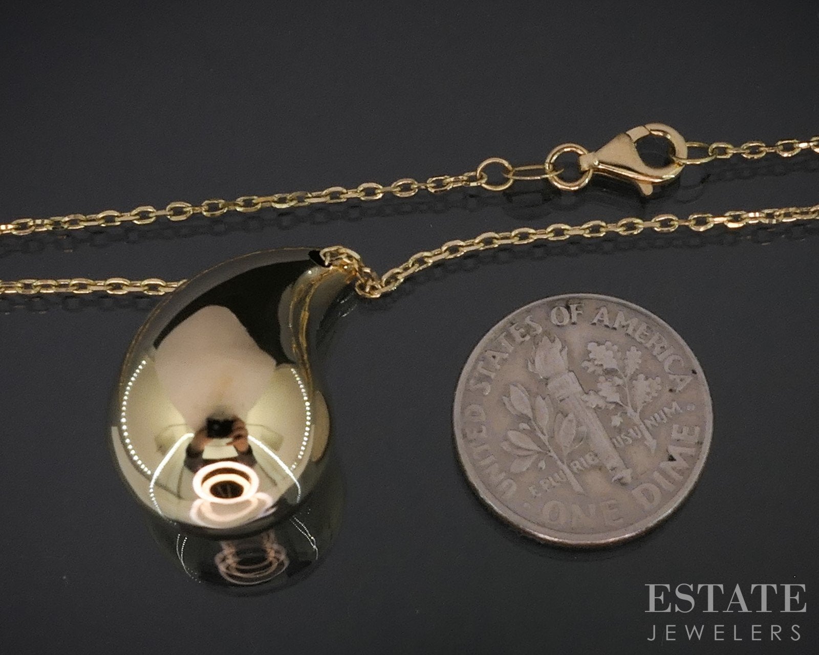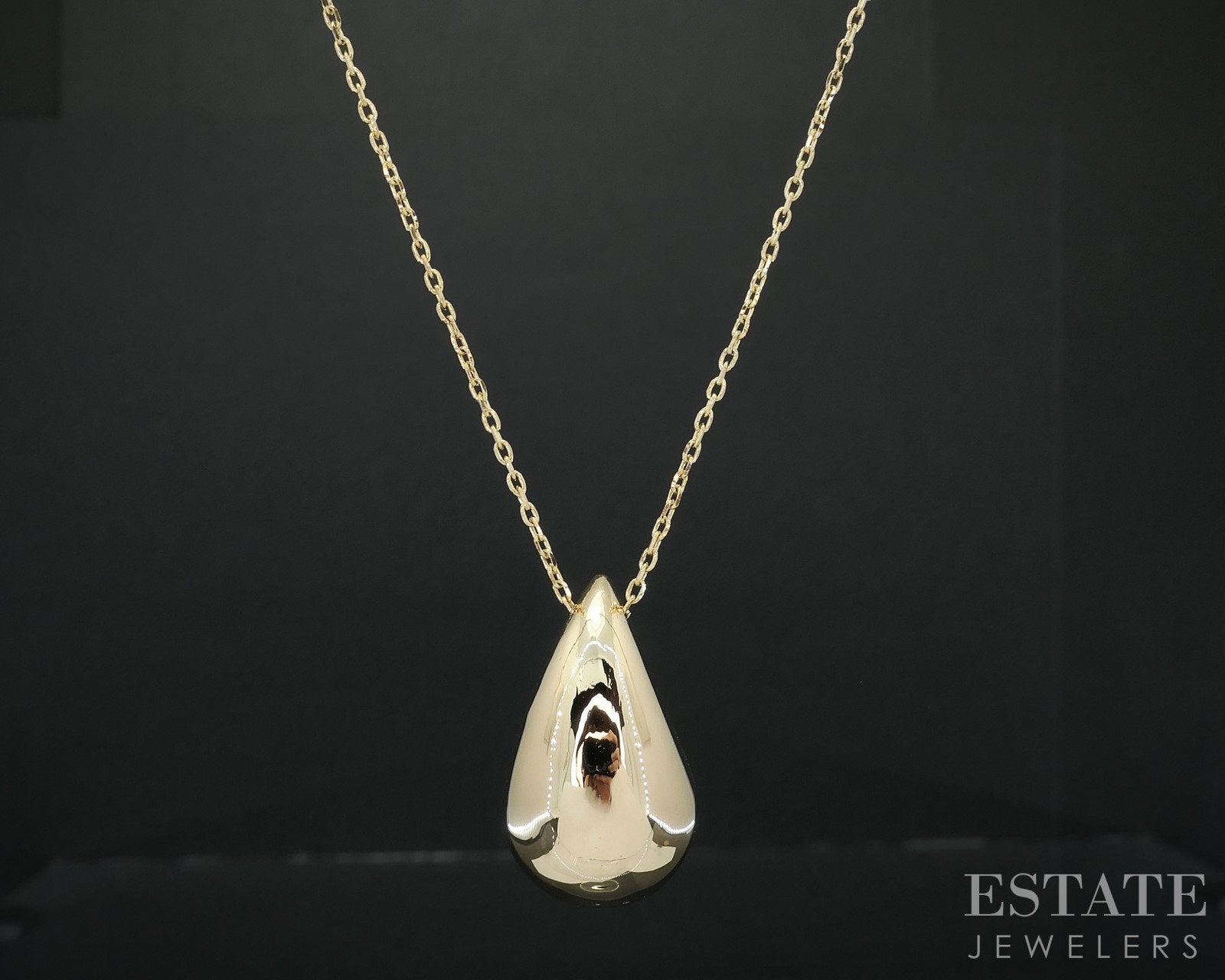 Additional Info: Lovely ladies necklace with a dainty cable chain holding a large smooth teardrop shaped pendant.