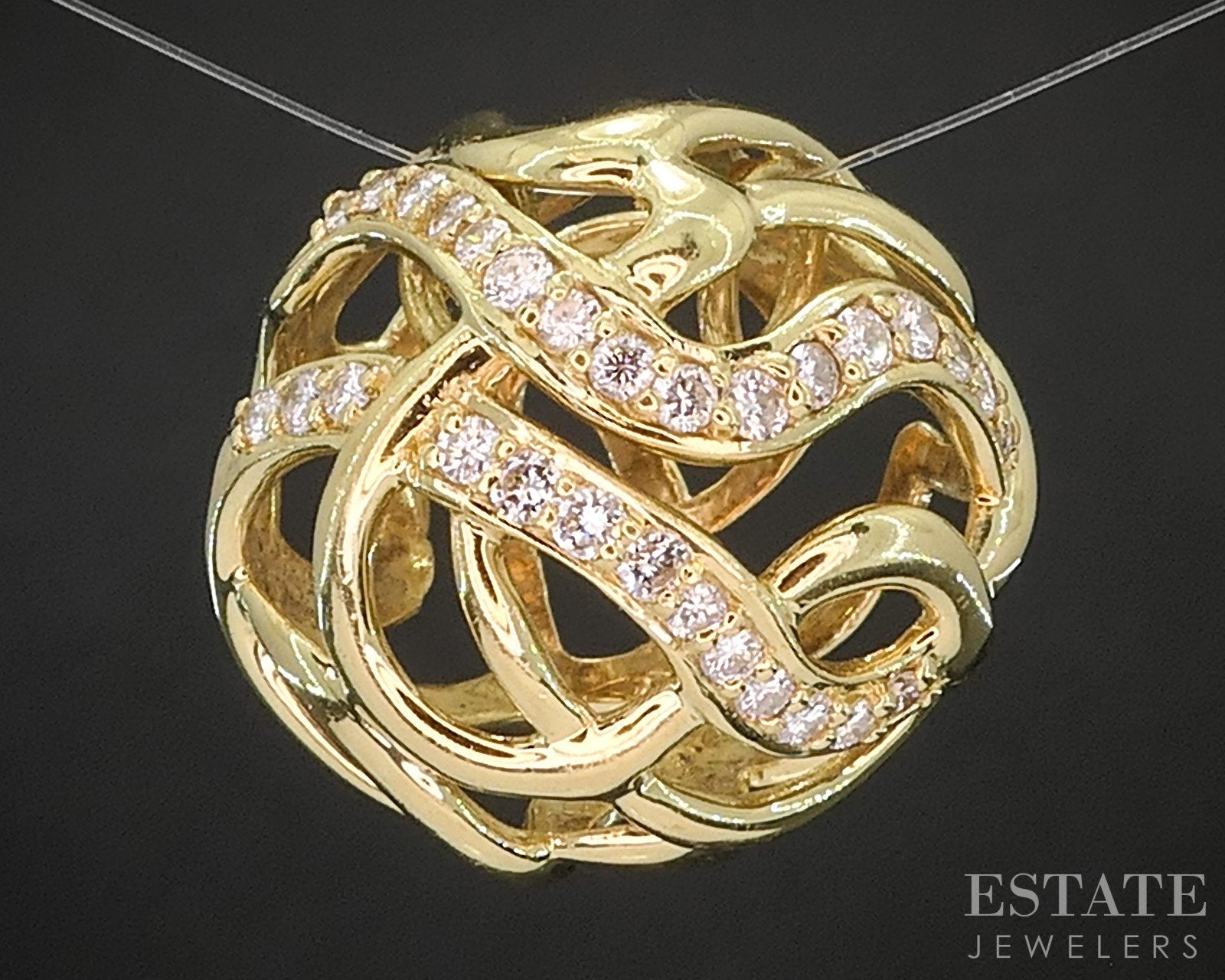 18k Yellow Gold Jose Hess Natural Diamond Open Sphere Slide Pendant 9.2g i20280
