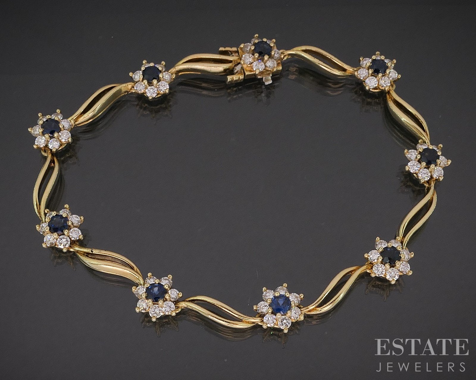 18k Yellow Gold Natural Blue Sapphire & Diamond Tennis Bracelet 14.7g 7"L i20043