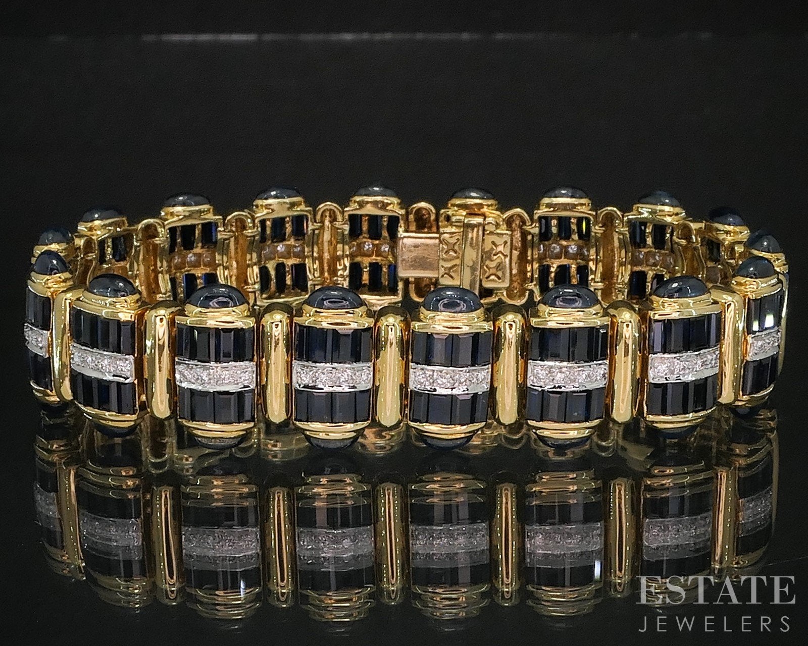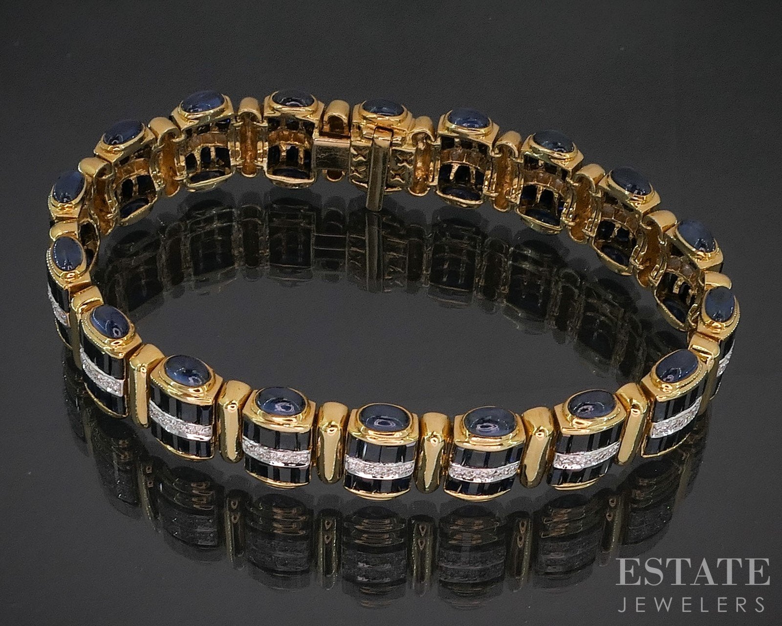 18k Yellow Gold Natural Blue Sapphire & Diamond Tennis Bracelet 40.9g 7"L i20240