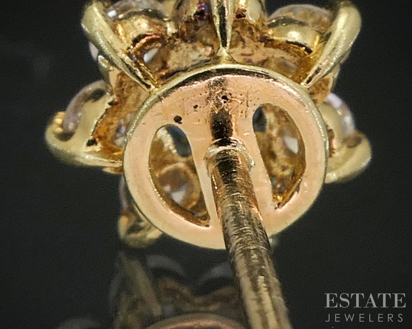 18k Yellow Gold Natural Diamond & Blue Sapphire Halo Stud Earrings 1.6g i20042