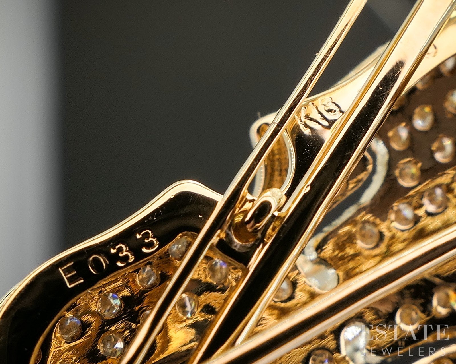 Additional Info: Artfully crafted in rich 18k yellow gold, this exquisite convertible pin brooch and pendant is designed in the elegant form of a violin and bow, celebrating both fine craftsmanship and musical artistry. Natural Emeralds are beautifully set along the violin’s neck, adding vibrant green accents that contrast strikingly with the warm gold. The body of the violin is adorned with pavé-set Diamonds, creating a brilliant shimmer that highlights the graceful curves of the instrument. Versatile and finely detailed, this whimsical yet luxurious piece can be worn as a brooch or a pendant, making it a truly distinctive statement for any fine jewelry collection