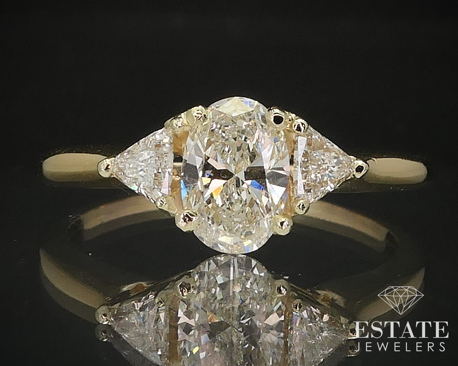 18k Yellow Gold Oval Natural .90ctw Diamond Engagement Ring 3.2g i17433