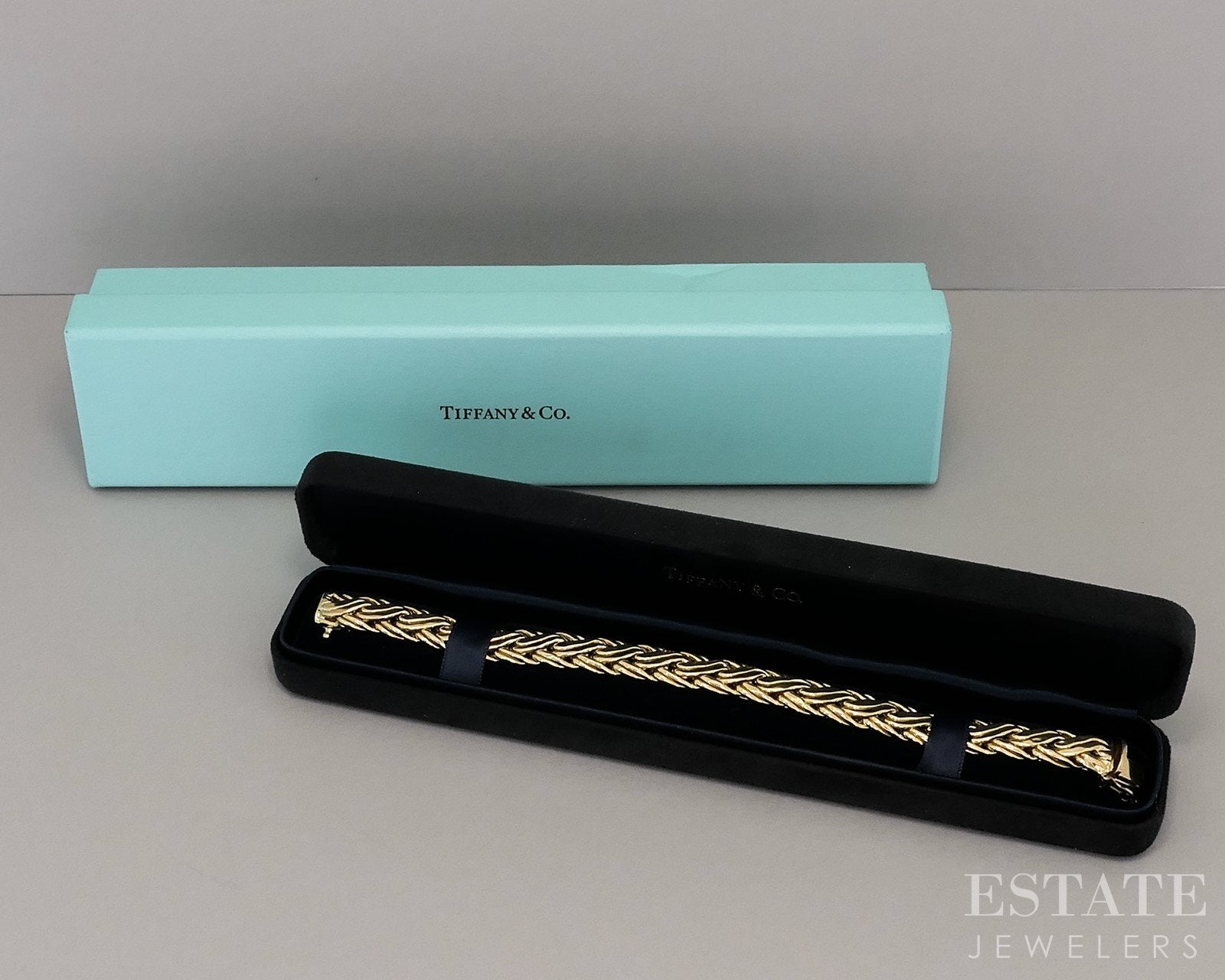Additional Info: Circa early 2000 Tiffany & Co. link bracelet with Byzantine style braided designs throughout. Box style clasp and working safety latch. The estimated retail for this genuine Tiffany piece is a whopping $10,000! Comes with original Tiffany box.