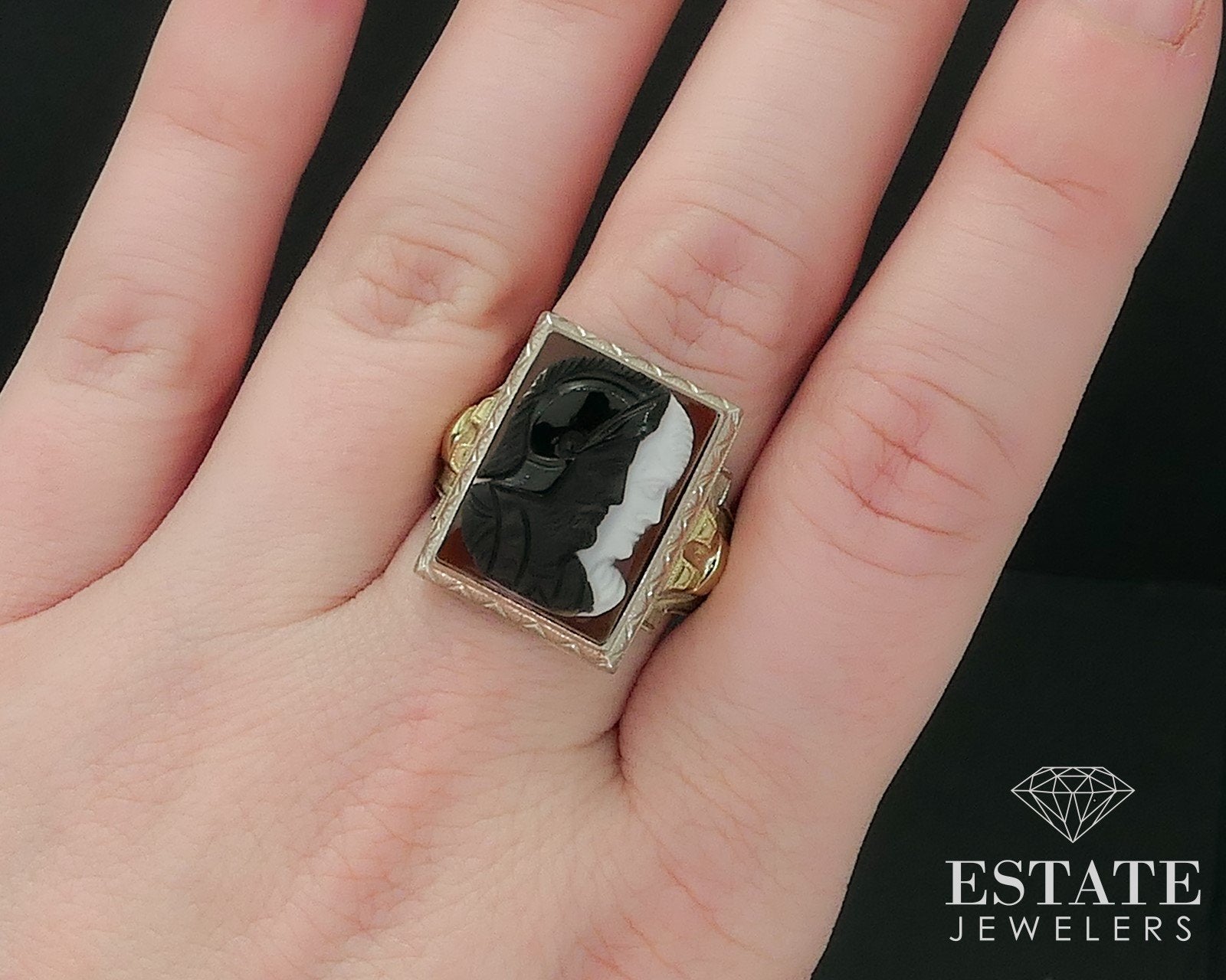 Antique 10k White Gold Natural Sardonyx Double Cameo Mens Ring 8.7g i17638