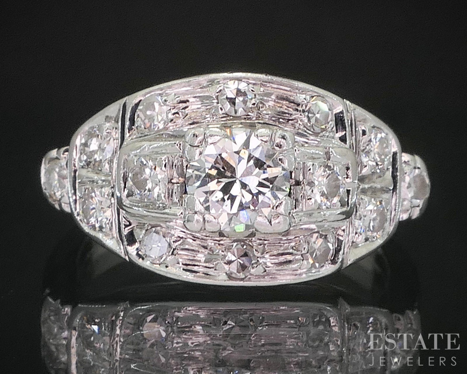 Antique 14k White Gold Natural .60ctw Diamond Engagement Ring 4.4g i20207