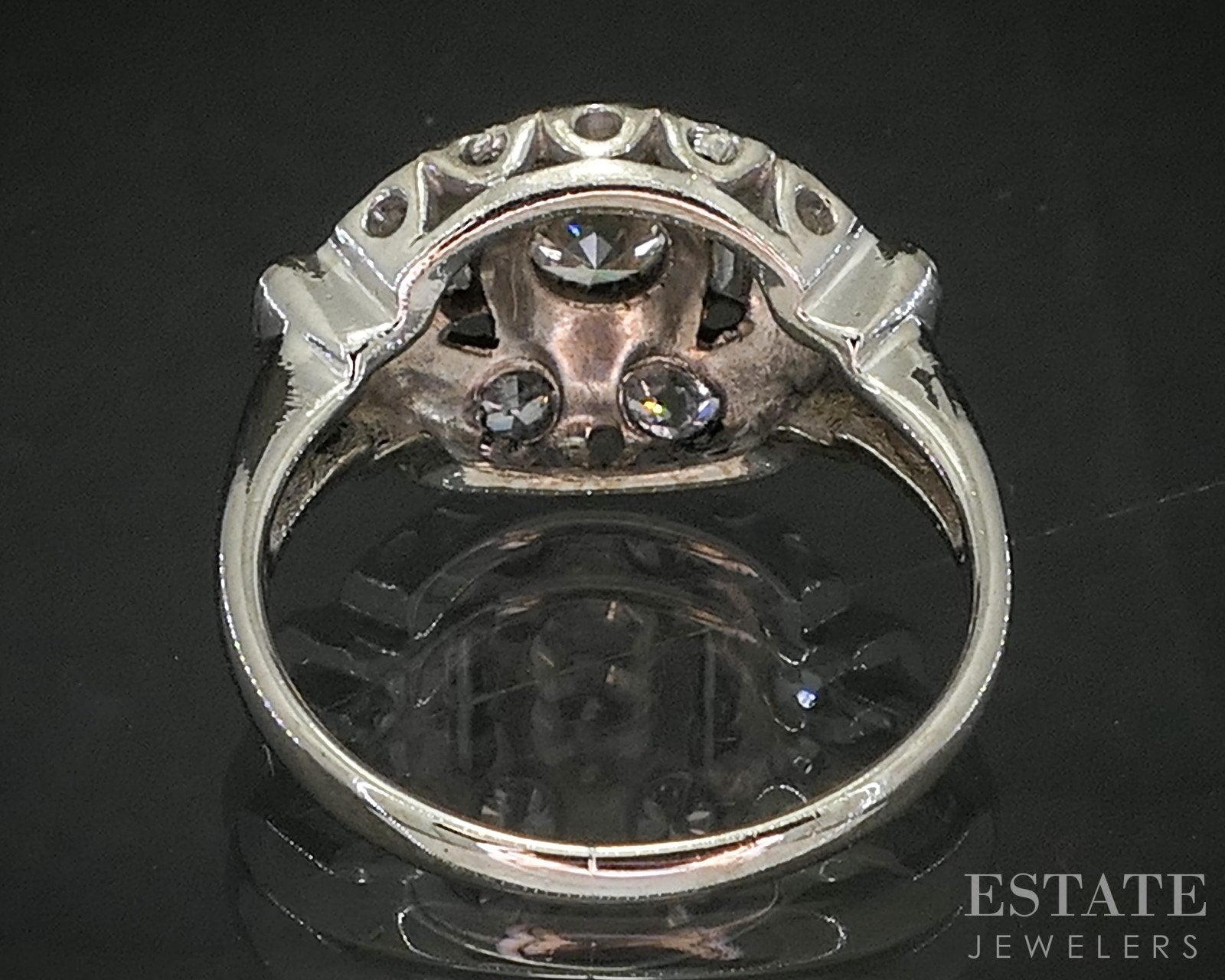 Diamond Information: Approximate .40ct to the main round cut Diamond with .52ctw of old cut accents. SI1 clarity with J color to it