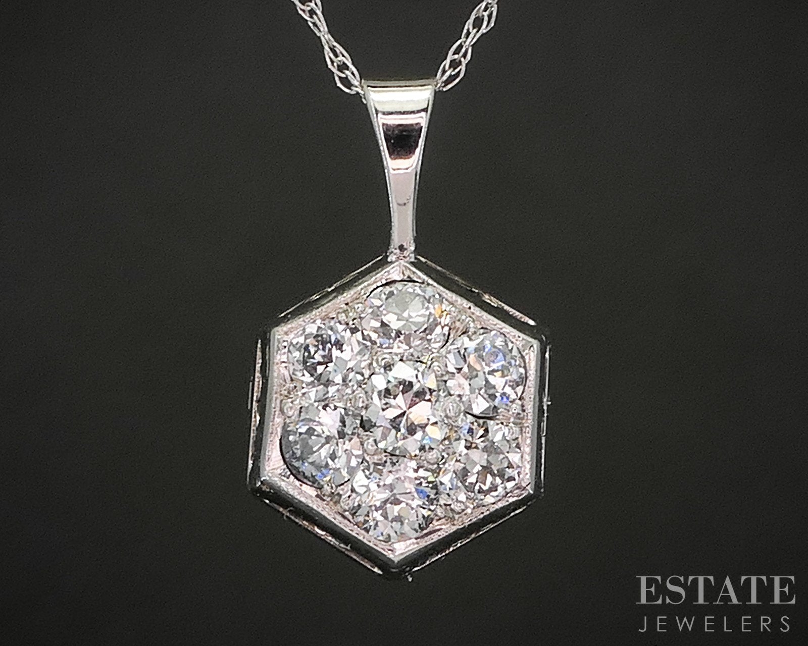 Antique 14k White Gold OEC Natural .50ctw Diamond Cluster Necklace 1.8g p16235