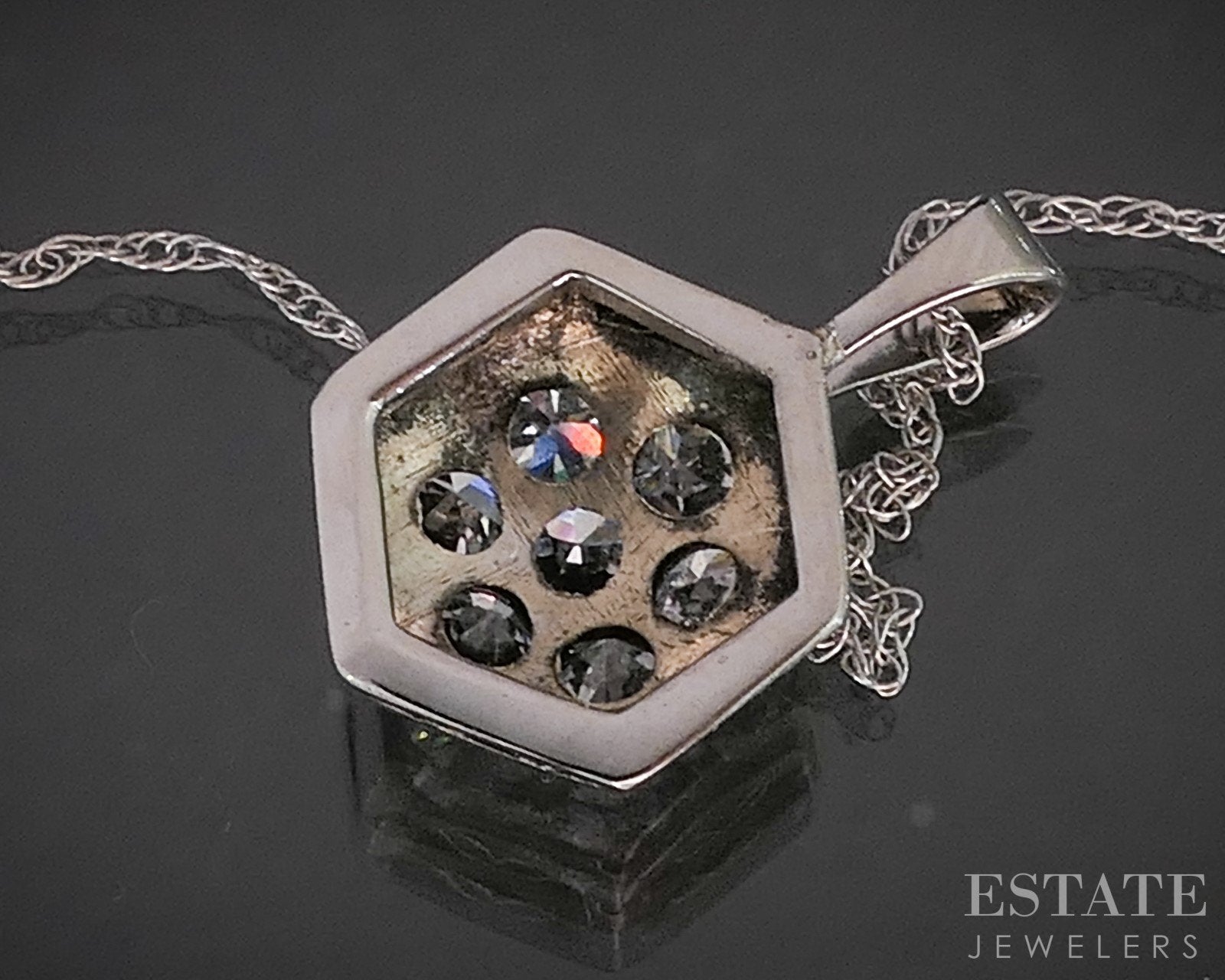 Additional Info: Sparkling ladies necklace with a cluster of old cut Diamonds in a six-sided shaped pendant converted from a stick pin. Attached to a dainty rope chain.