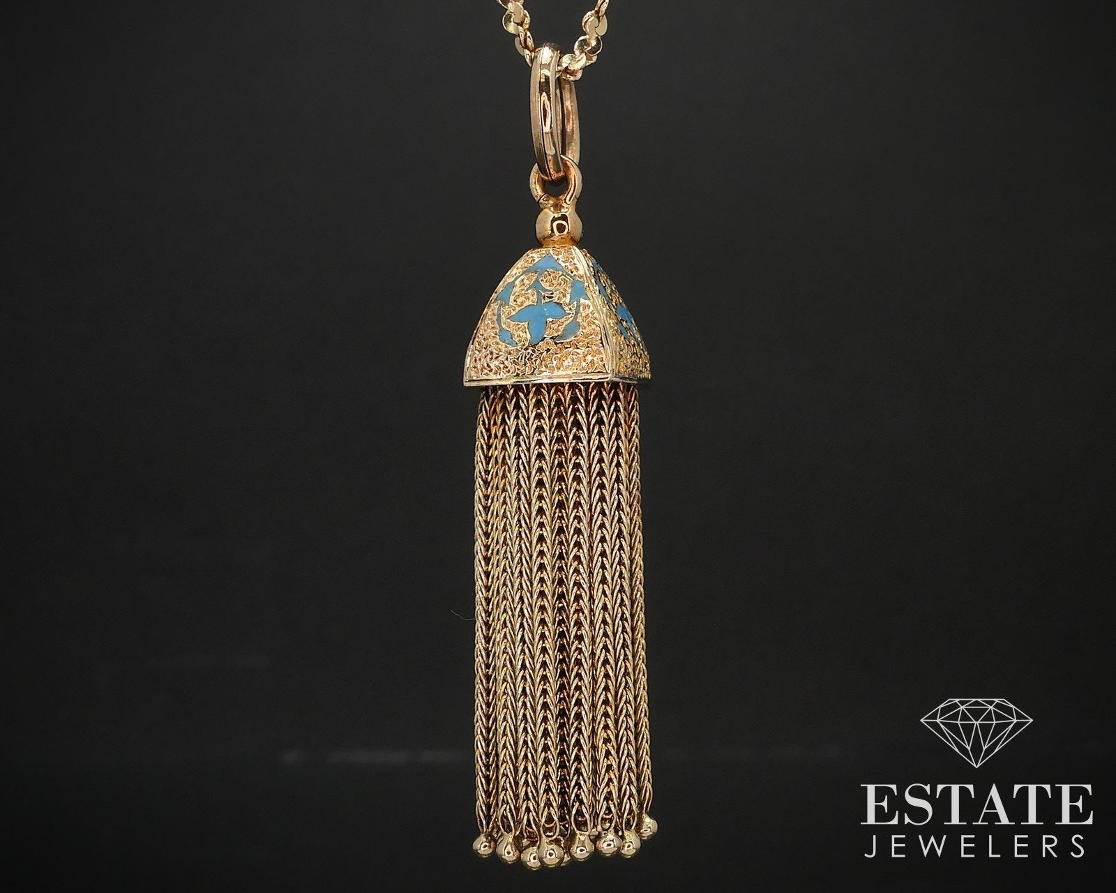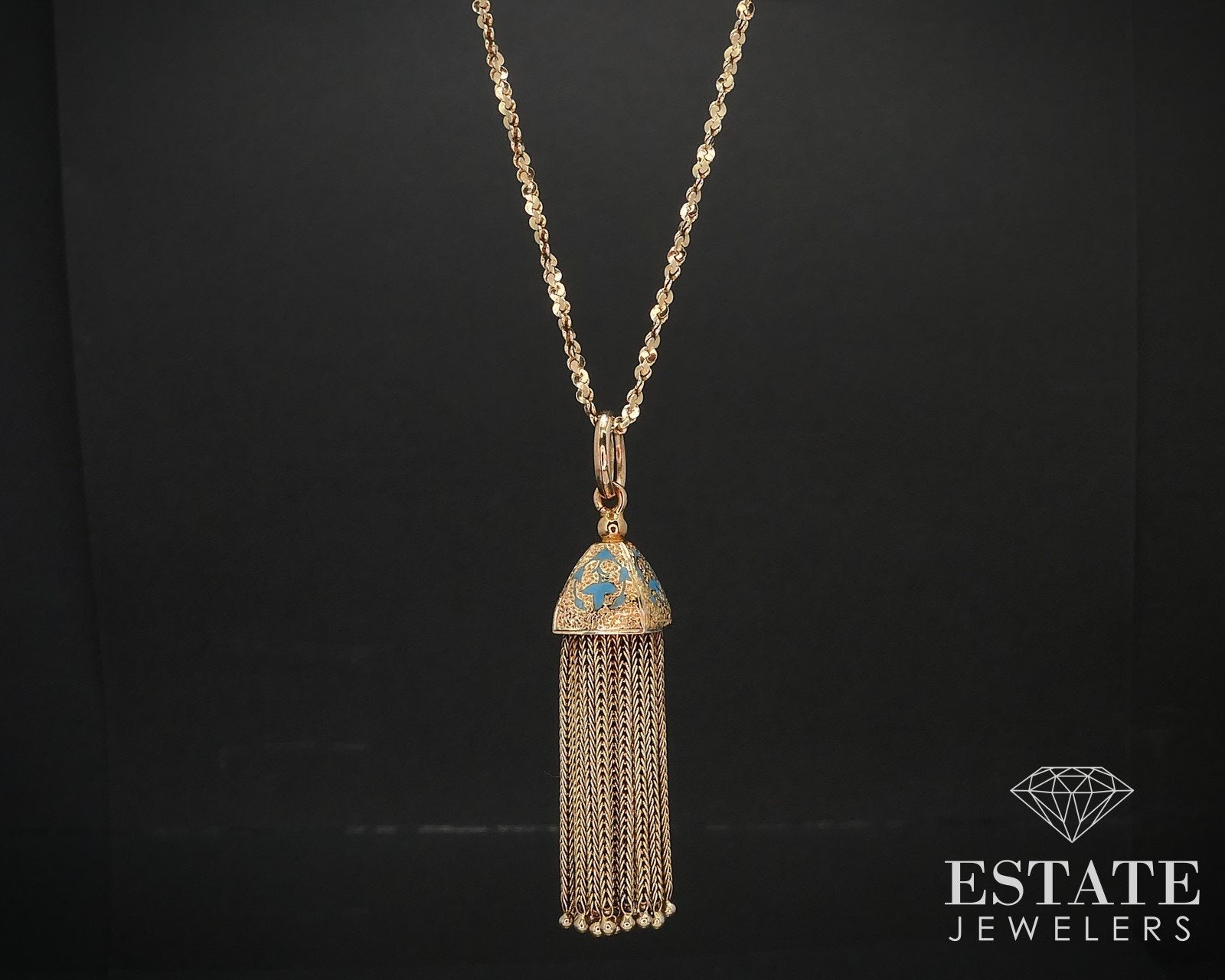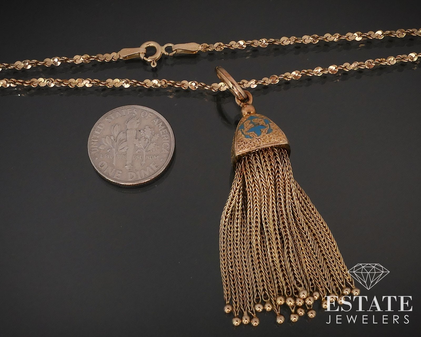 Antique 14k Yellow Gold Enameled Tassel Pendant Necklace 18g 30"L i16901