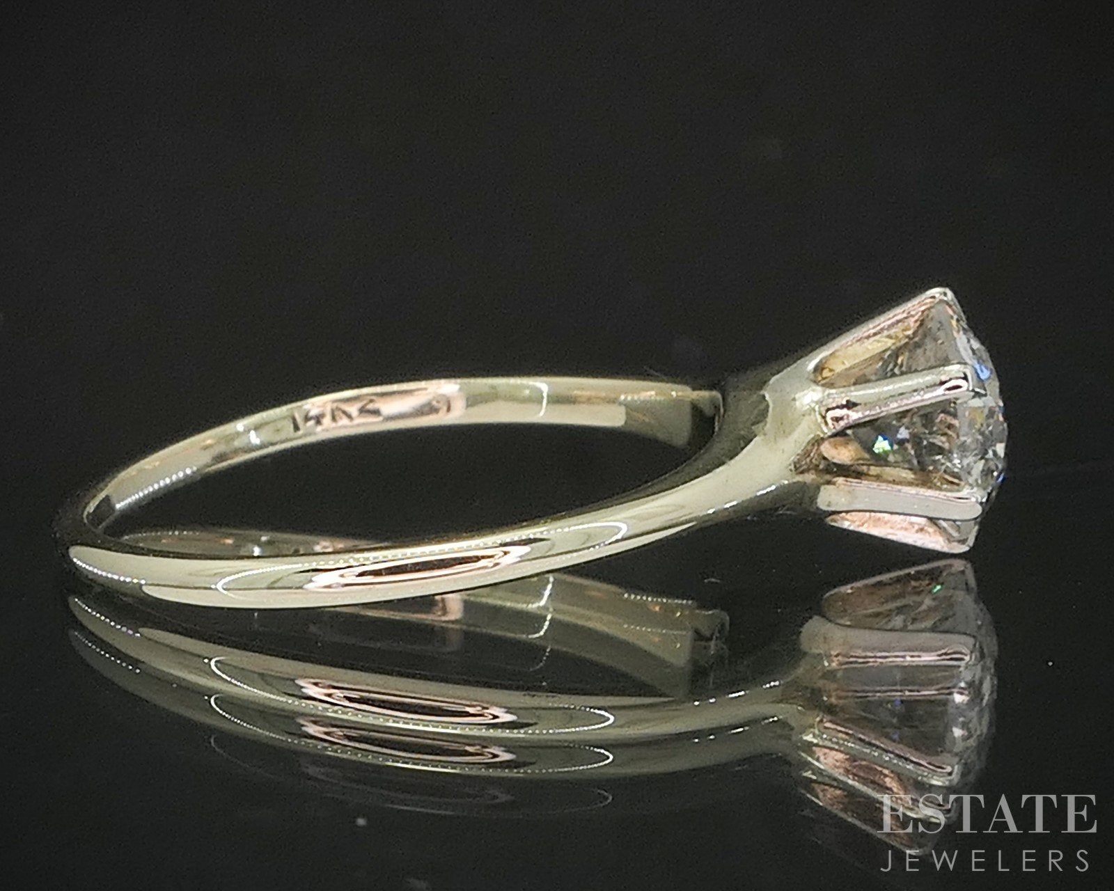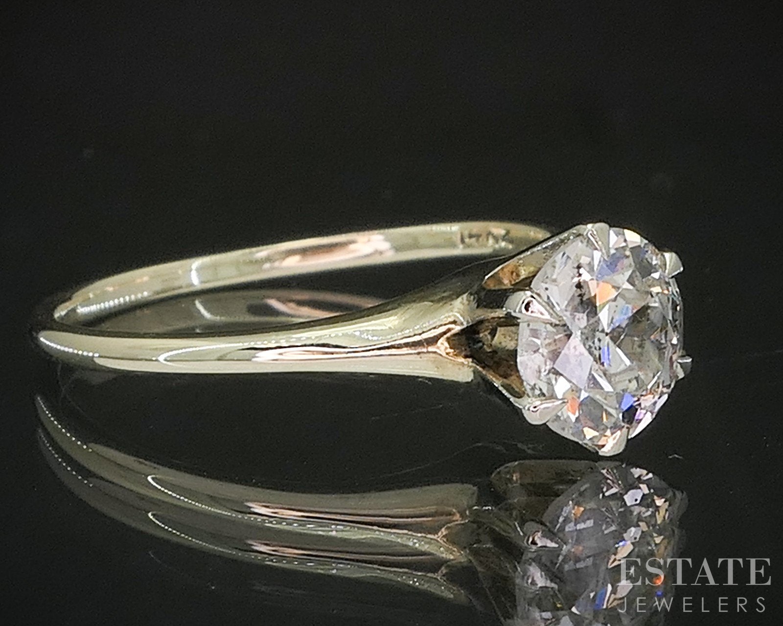 Antique 14k Yellow Gold European Natural 1.00ct Diamond Solitaire Ring p15389