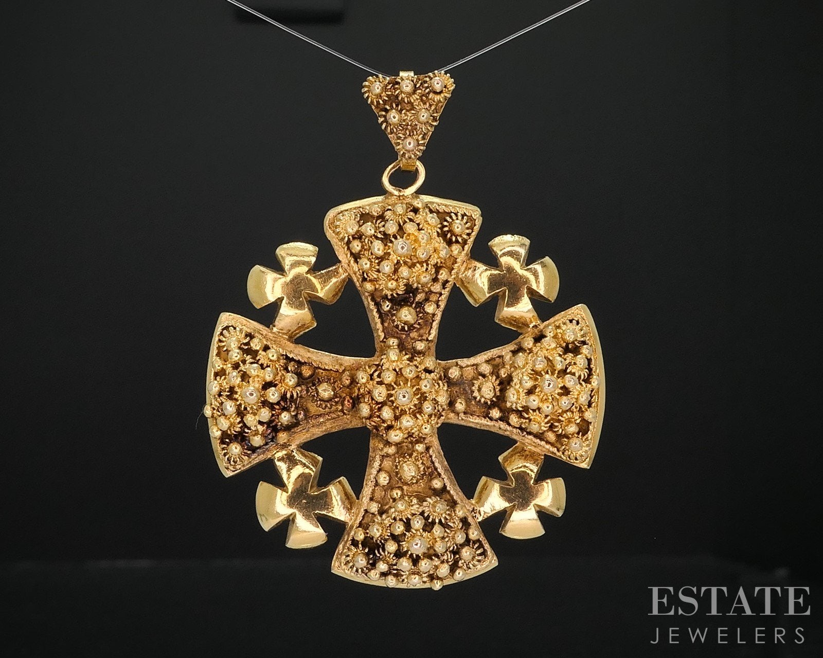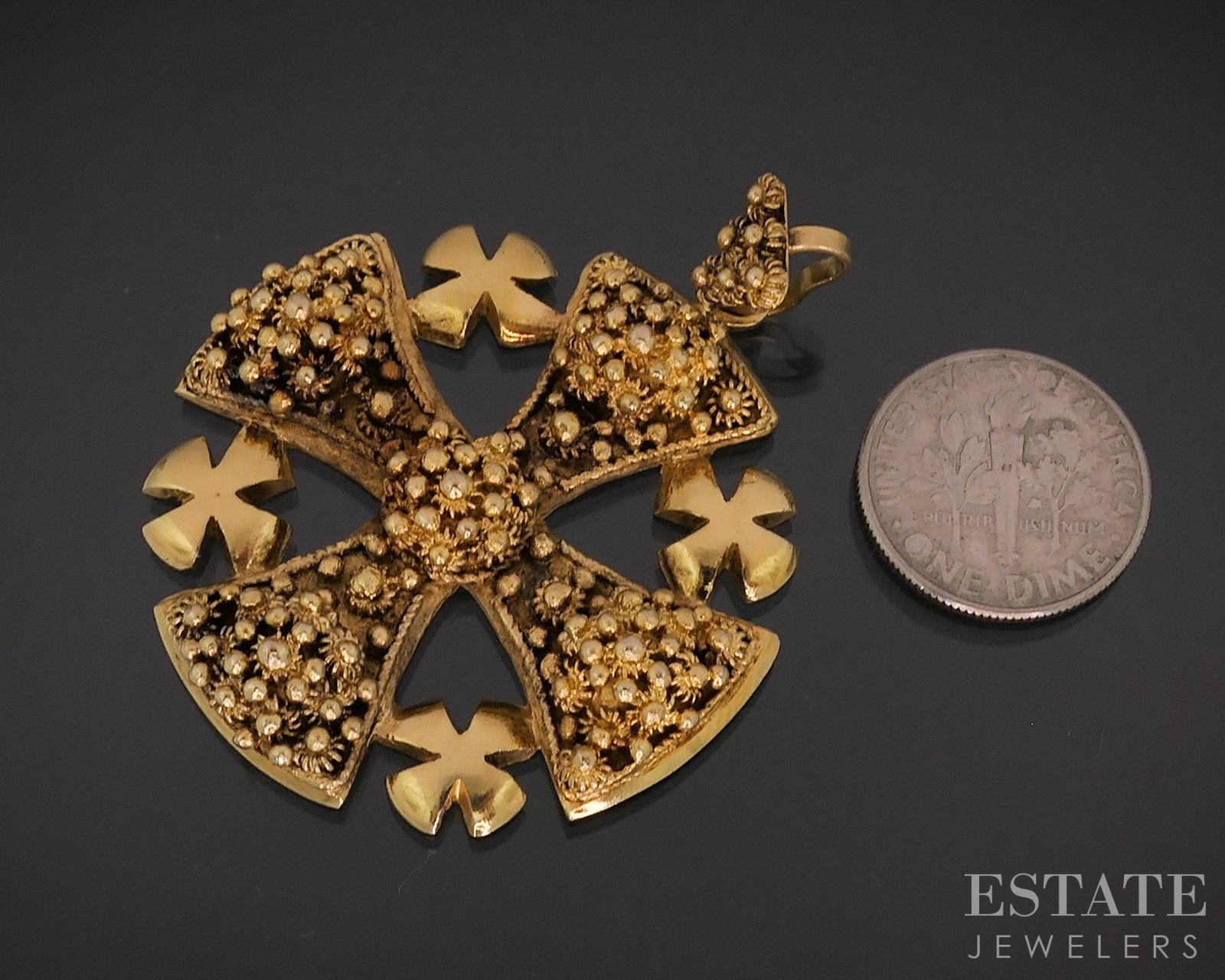 Antique 14k Yellow Gold Handmade Jerusalem Cross Castellani Pendant 21g i18301
