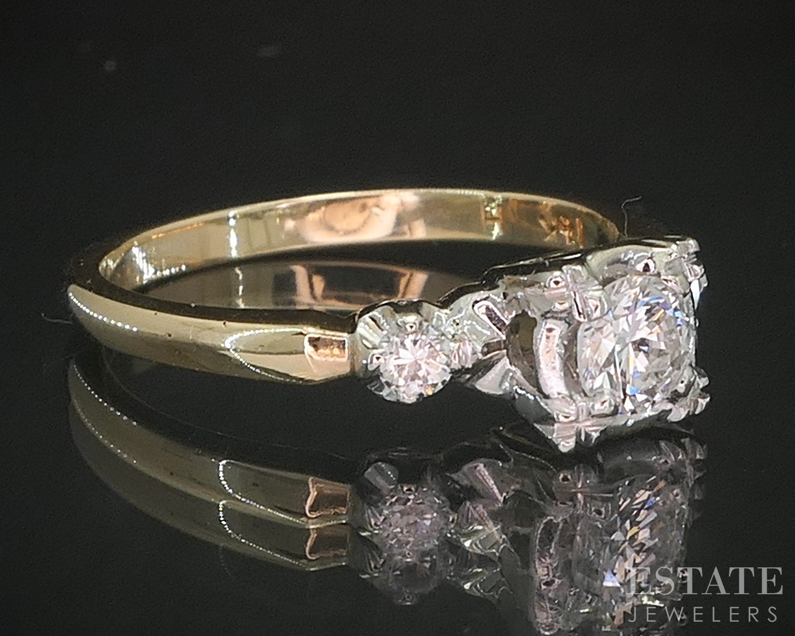 Additional Info: Sparkling mid to early 1900's engagement ring in a two tone gold setting with a sparkling Diamond in the head and on the band.