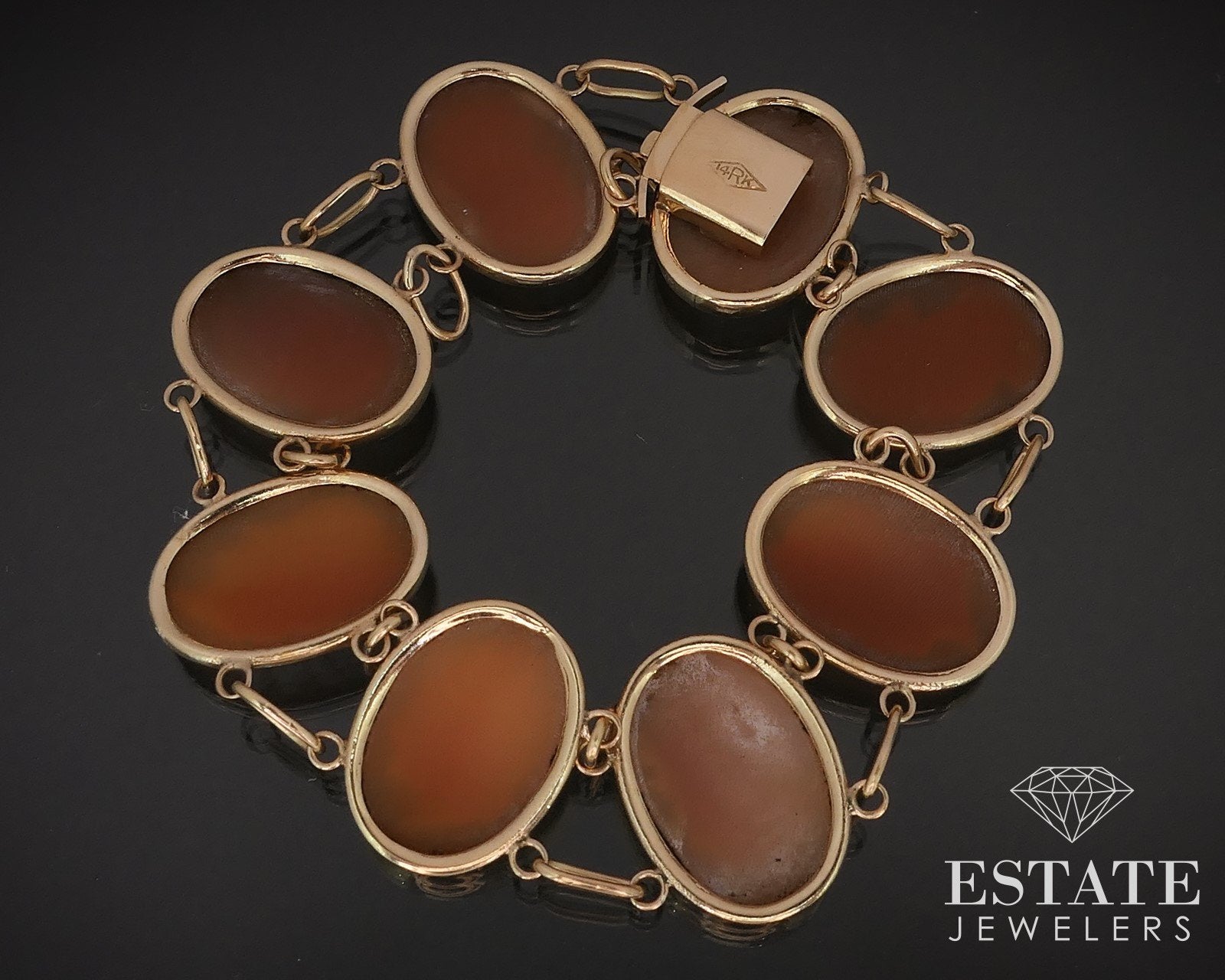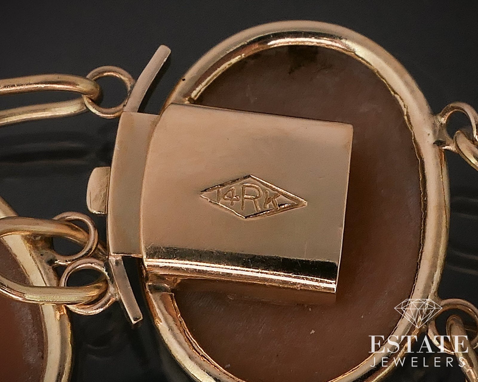 Antique 14k Yellow Gold Natural Cameo Link Ladies Bracelet 17.7g 7.25"L i16674