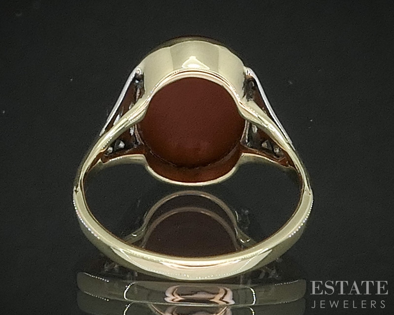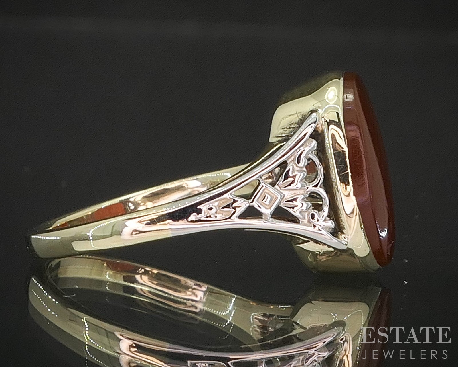 Antique 14k Yellow & White Gold Oval Natural Carnelian Filigree Ring 2.8g i20271