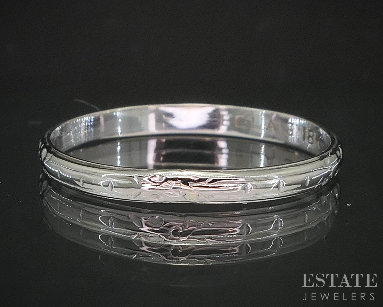 Antique 18k White Gold 2mm Engraved Ladies Wedding Band 1.1g i20351b