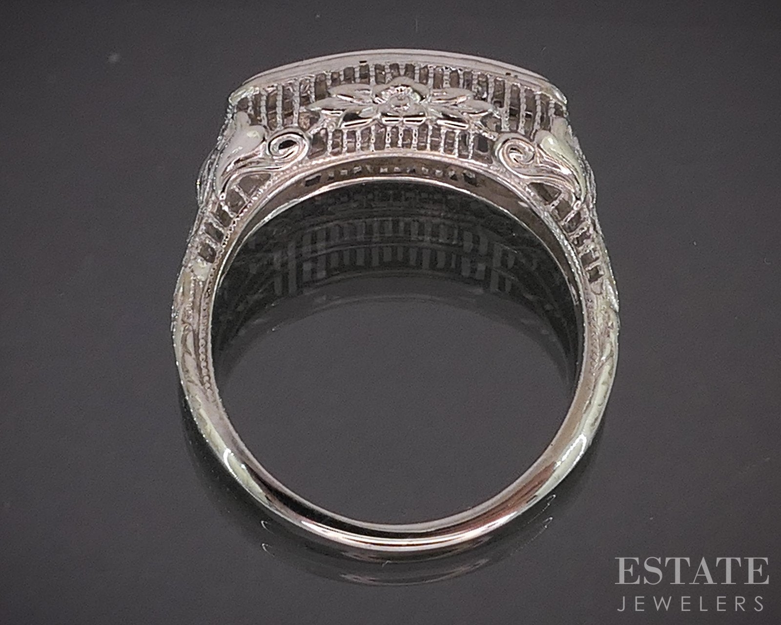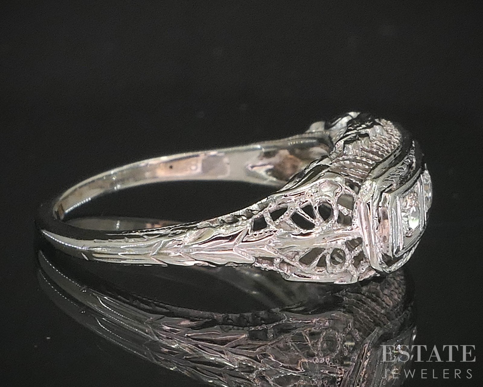 Antique 18k White Gold Natural .12ctw Diamond Filigree Band Ring 2.9g p18269b
