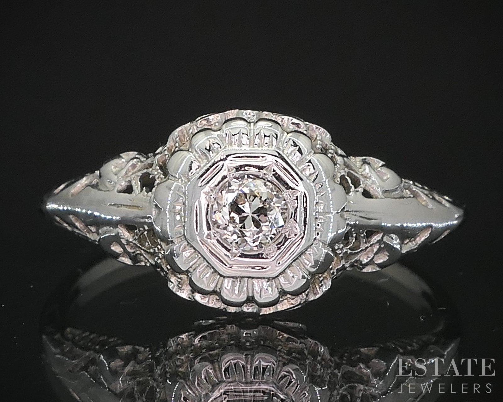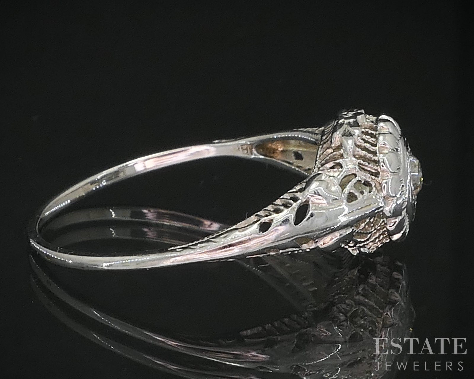 Antique 18k White Gold OEC Natural .10ct Diamond Filigree Solitaire Ring i19292