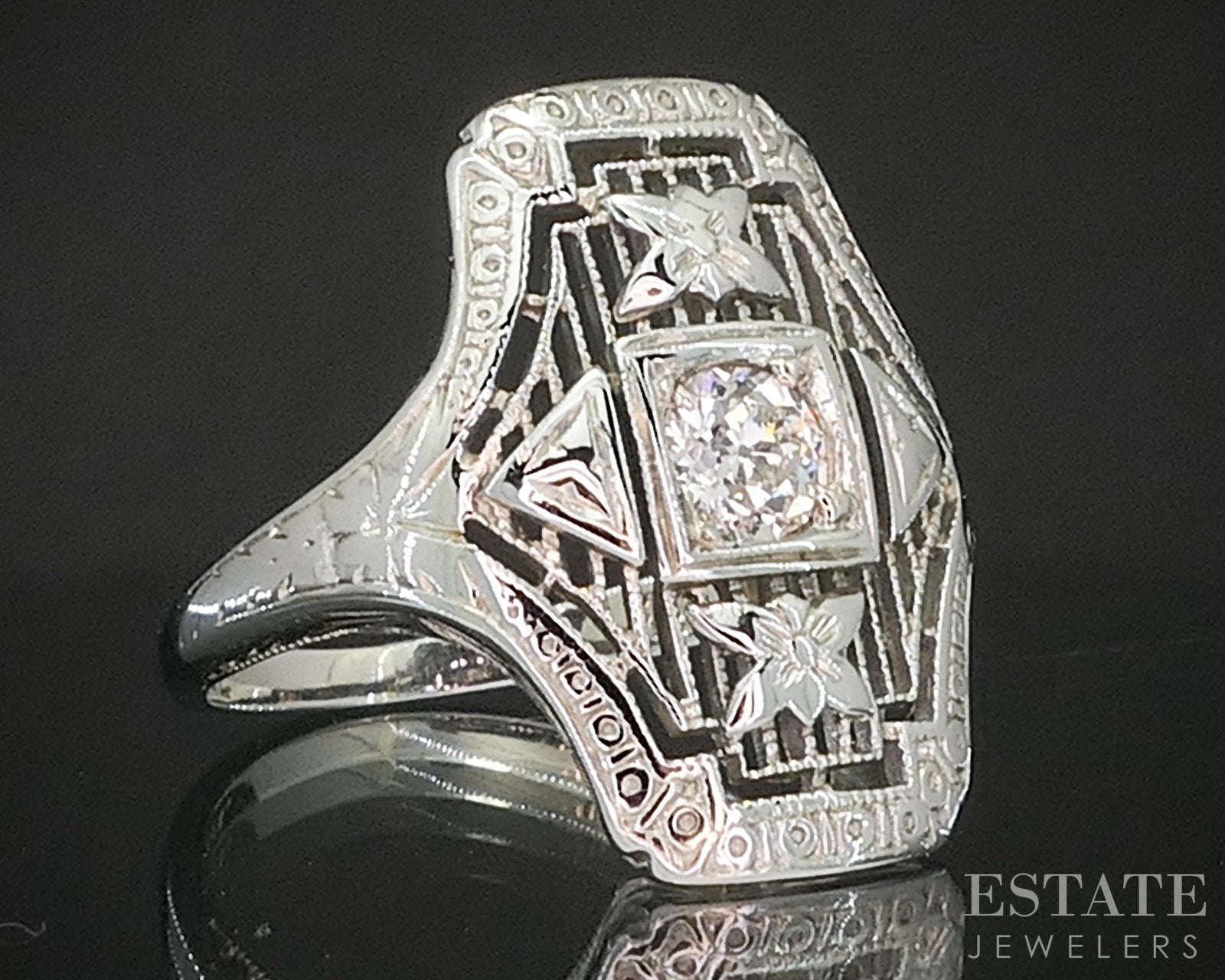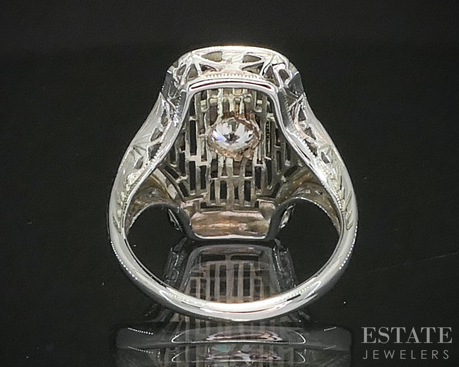 Antique 18k White Gold OEC Natural .27ct Diamond Filigree Ring 2.8g p15461