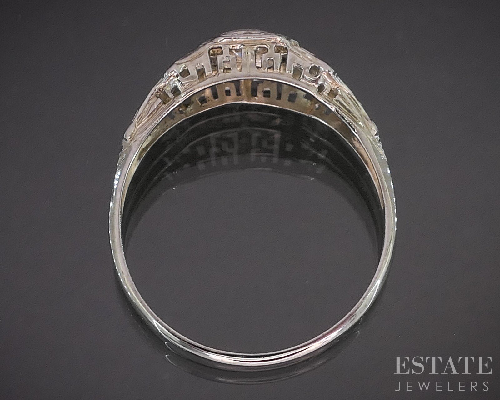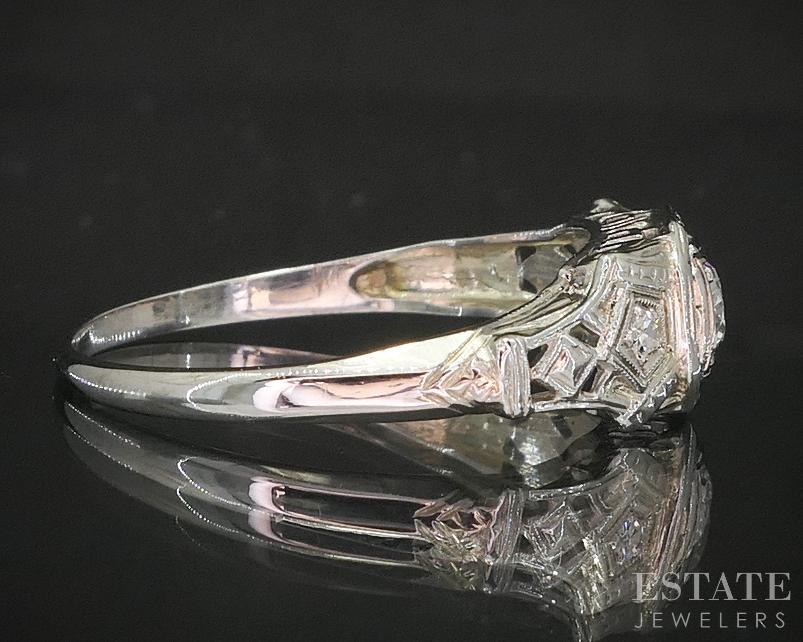 Antique 18k White Gold Transitional Natural .12ct Diamond Filigree Ring p15844