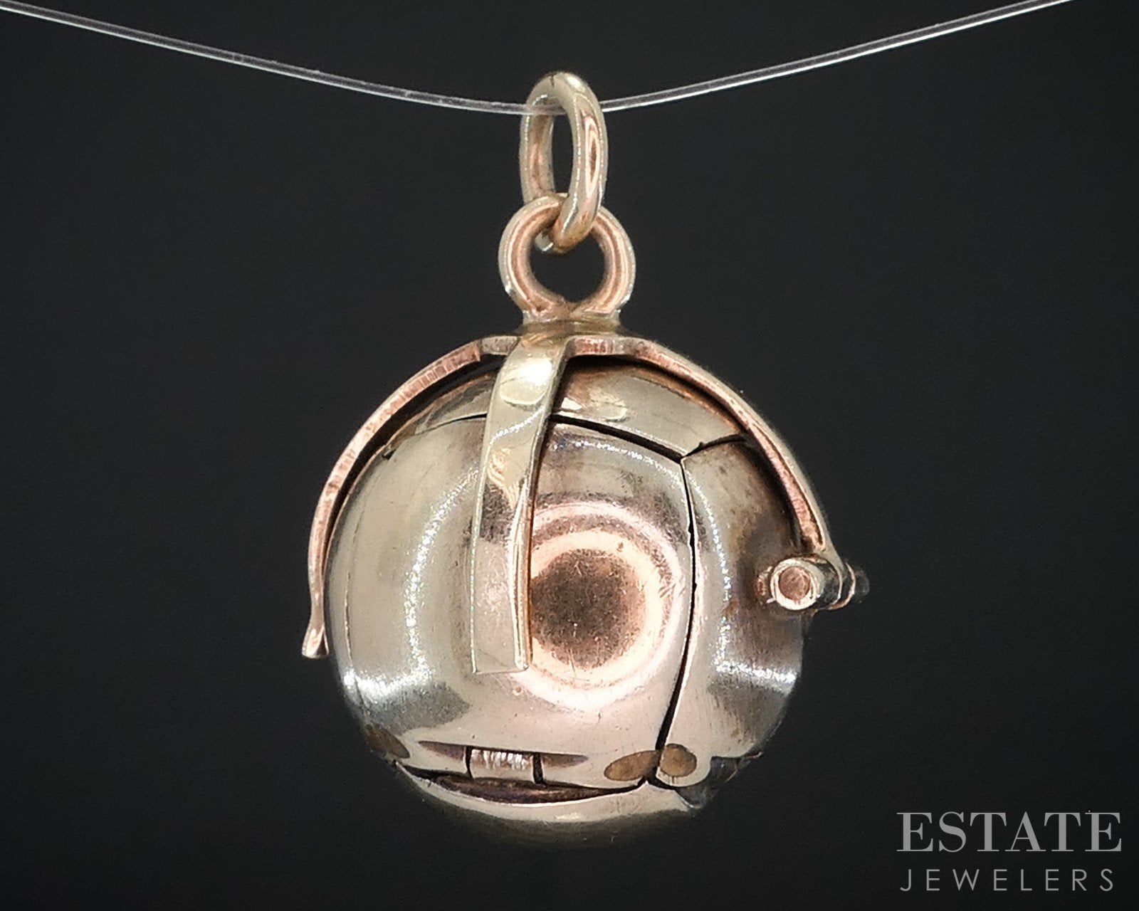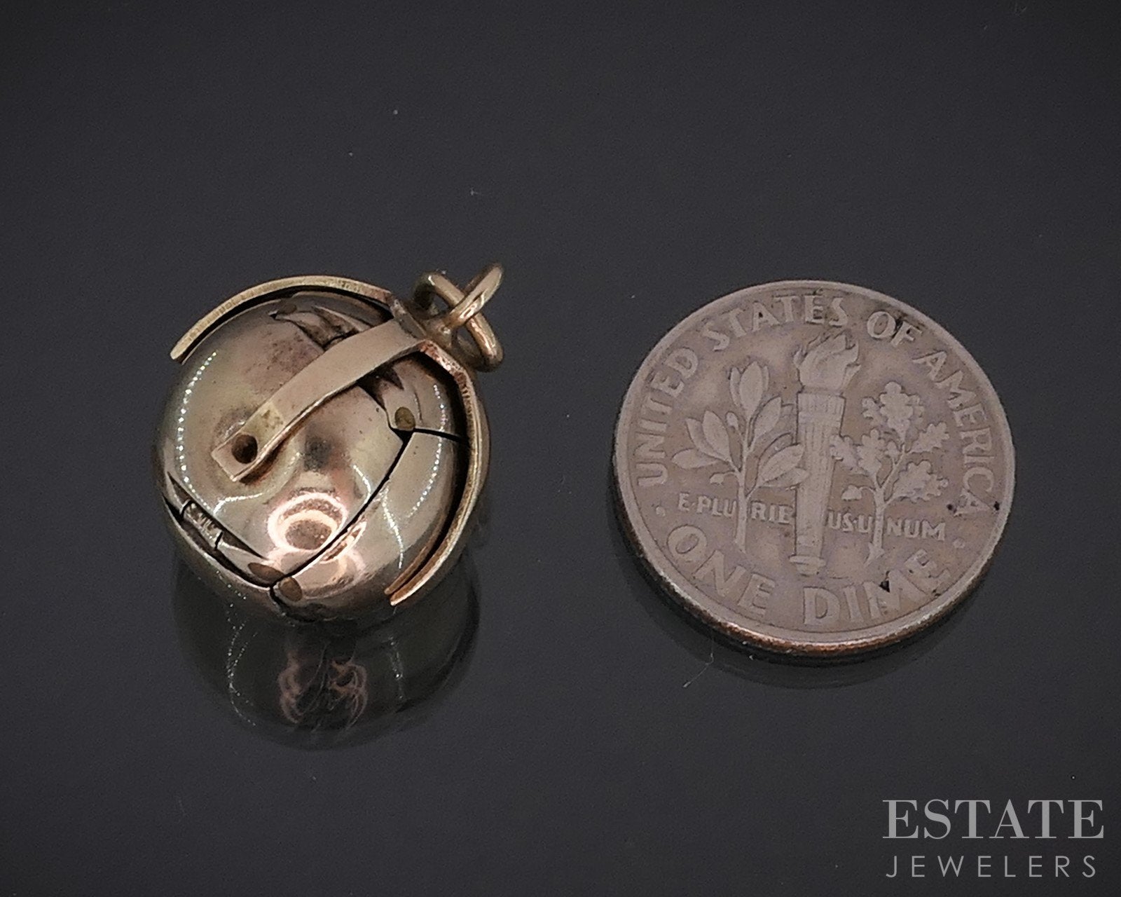 Additional Info: Unique mid-century ball/orb charm with a etched masonic symbols on the 6 pyramidal sections that fold together. The piece is cross shaped when completely undone. All the hinges and prongs still work great.