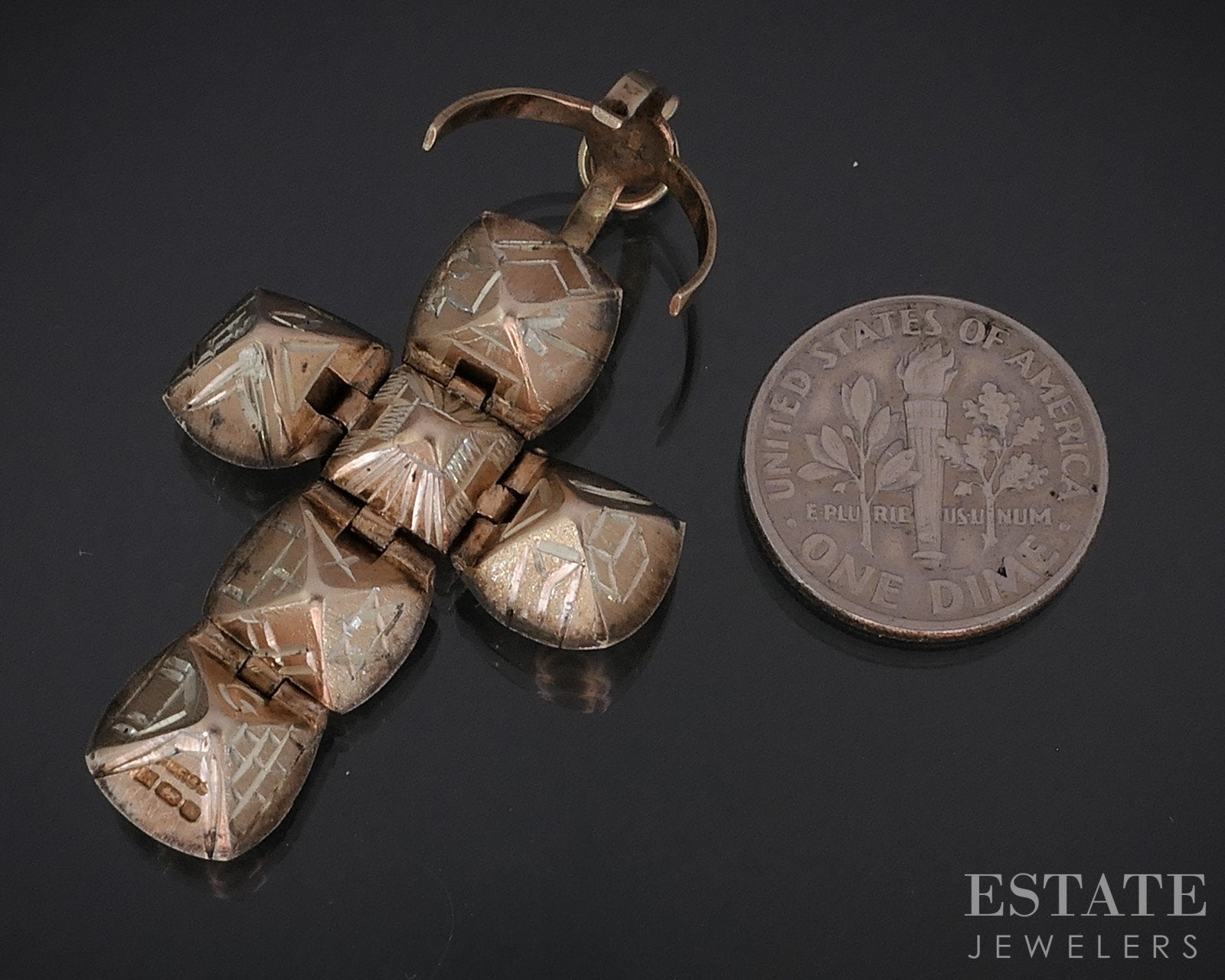 Antique 9k Yellow Gold Masonic Foldable Ball Cross Charm Pendant 6.5g i18843