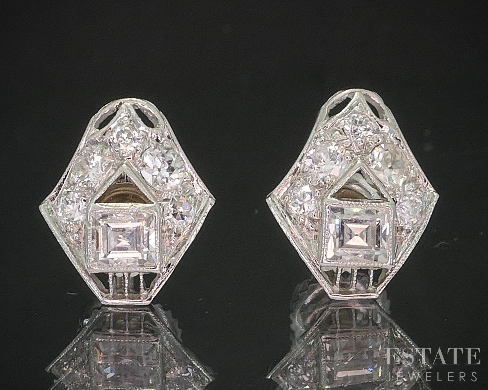 Antique Art Deco Platinum 14k Natural .39ctw Diamond Screw Back Earrings i20296
