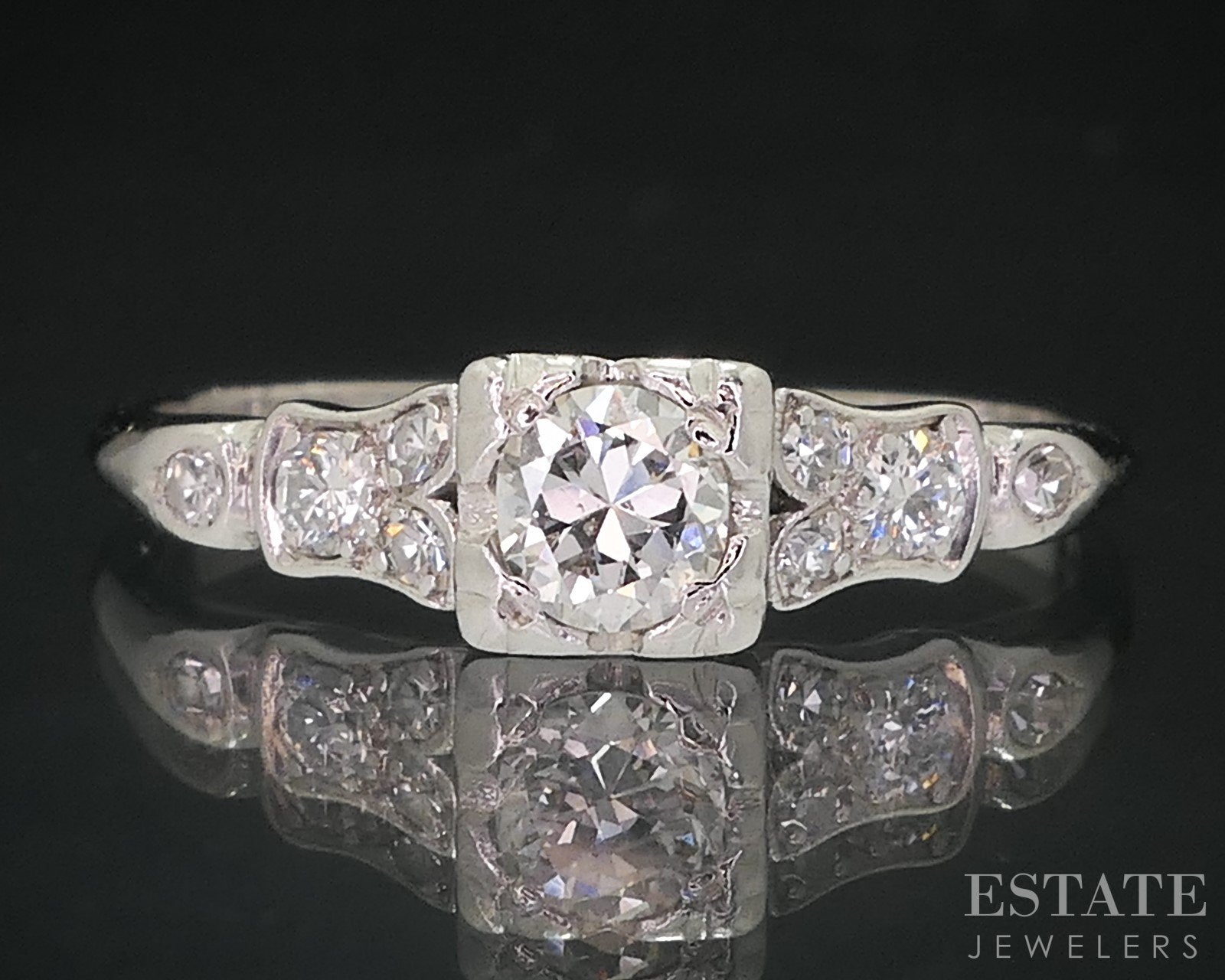 Additional Info: Sparkling Art Deco era engagement ring with a round and old cut Diamonds.