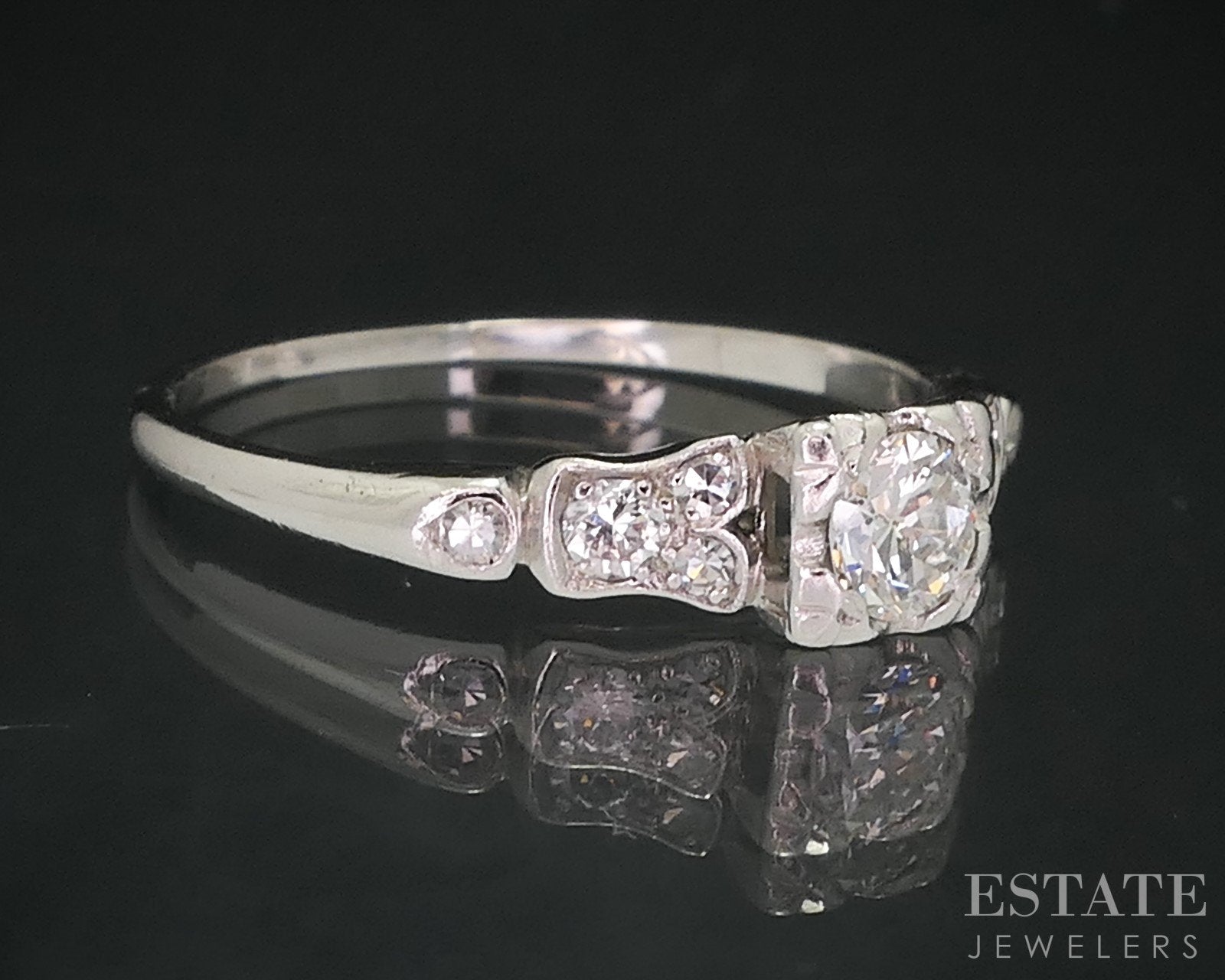 Antique Deco Platinum Round Natural .33ctw Diamond Engagement Ring 2.9g i18137