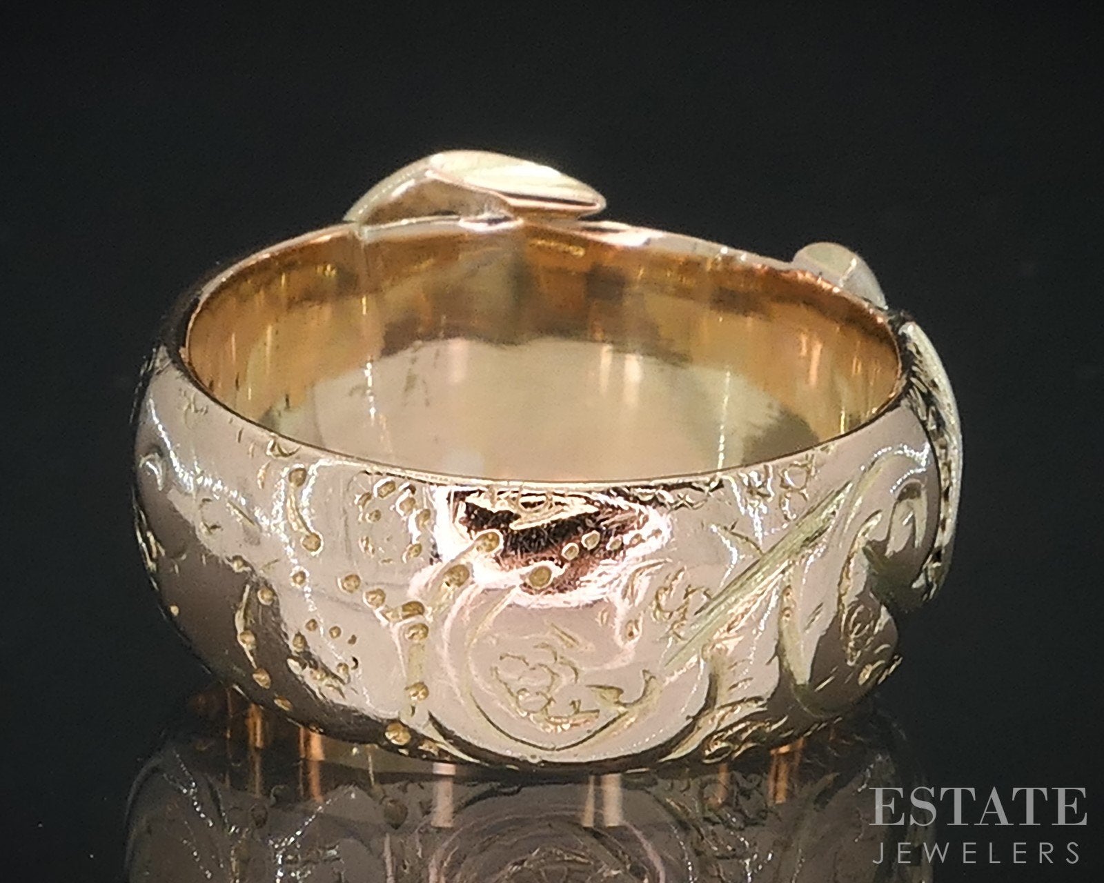 Antique Edwardian 9k Yellow Gold Engraved Buckle Ladies Band 6.3g i18408