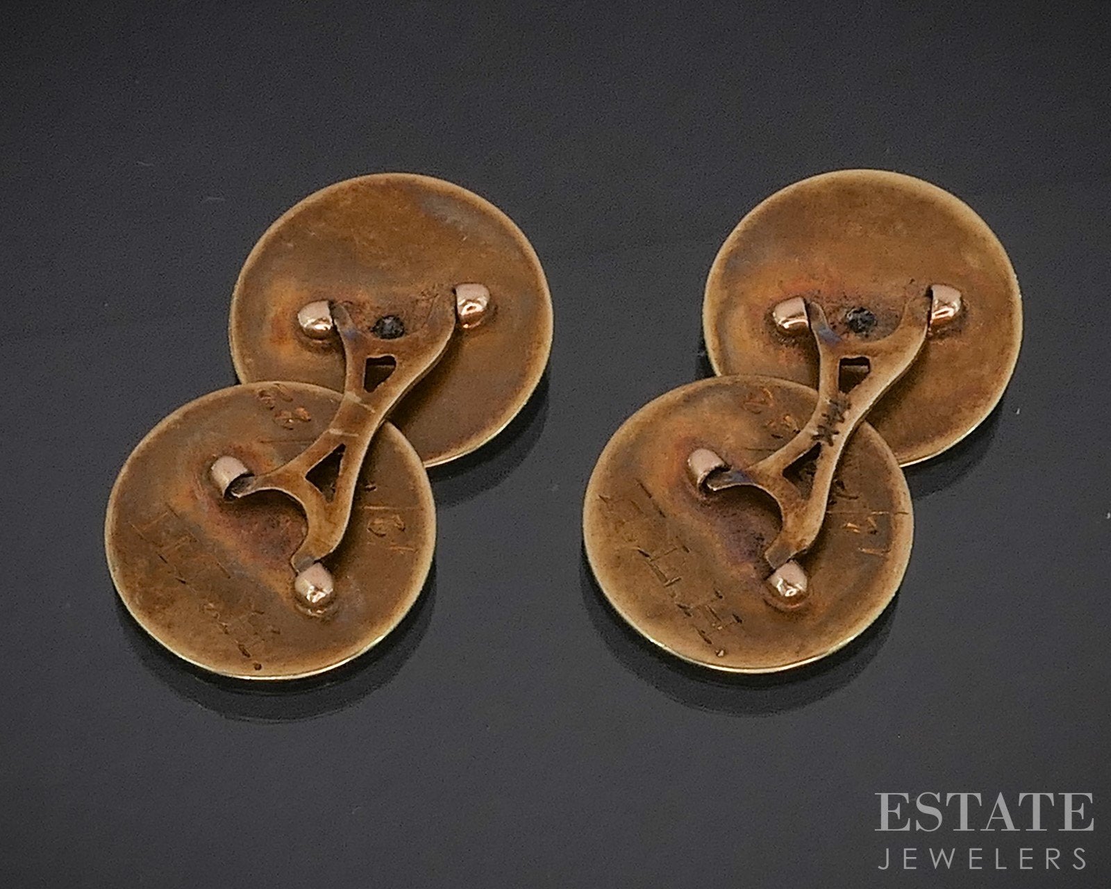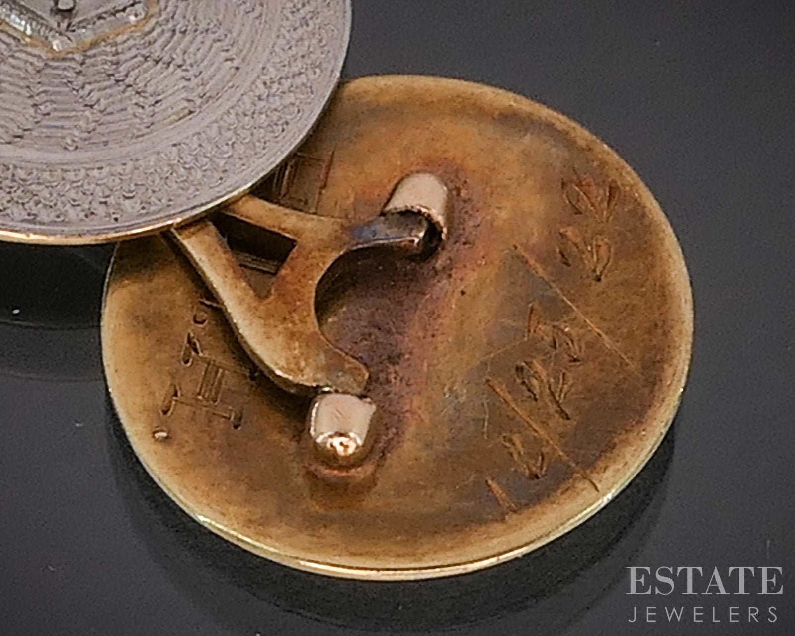 Antique Platinum & 14k Natural Diamond Engraved Men's Cufflinks 5.6g i20149