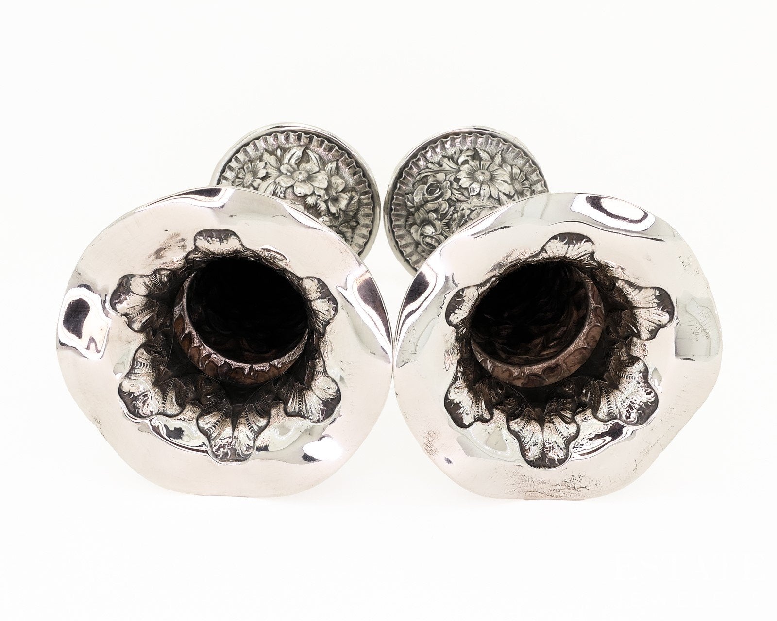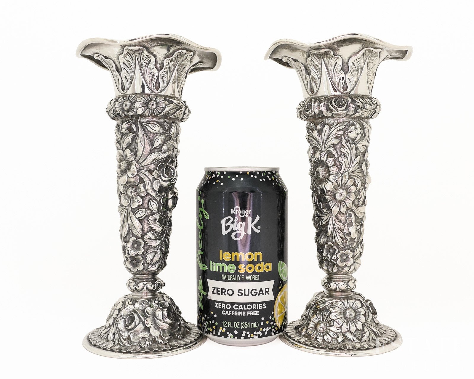 Antique Sterling Silver 1916 Stieff Repoussé 8" Flower Vase Set 494g p18863