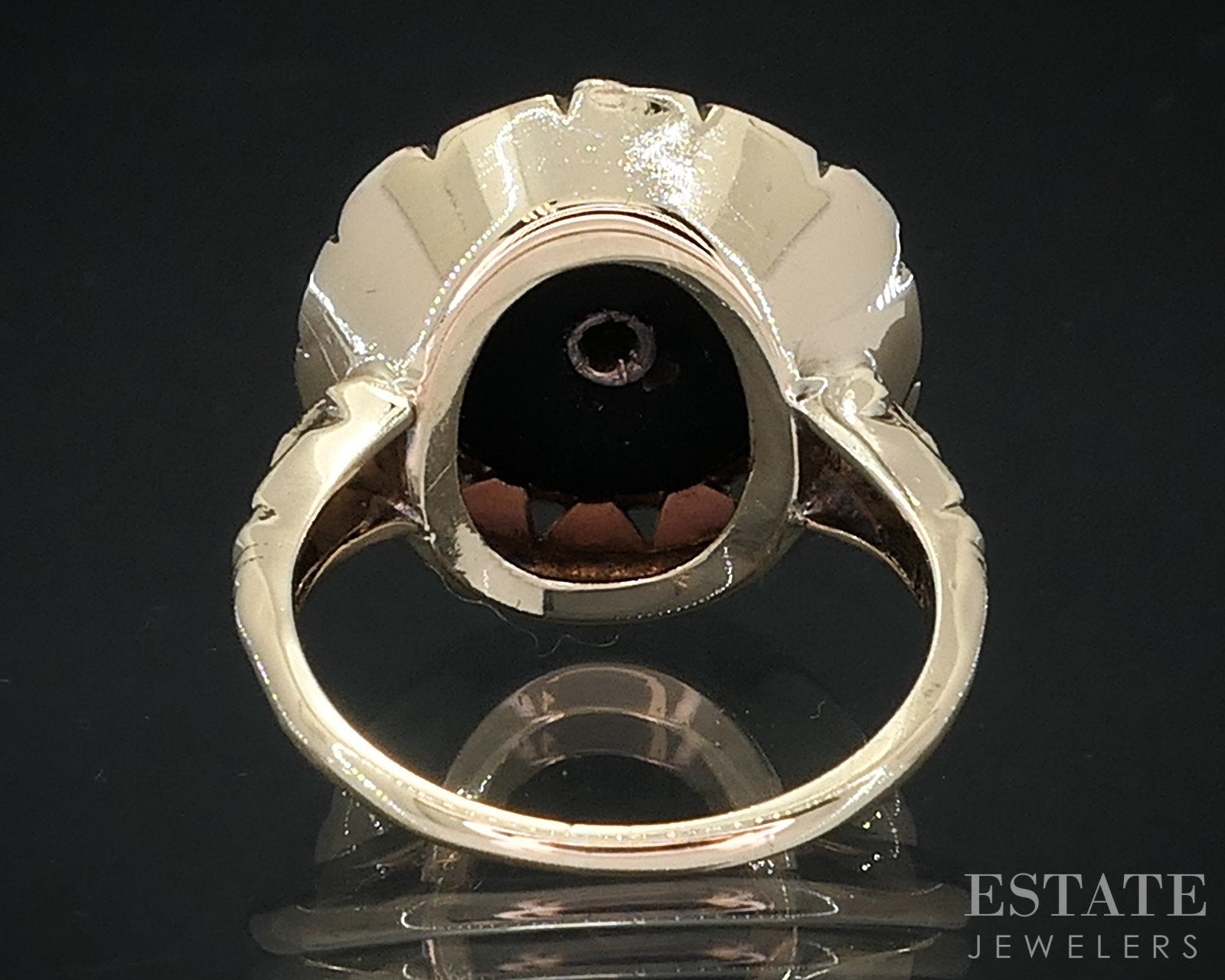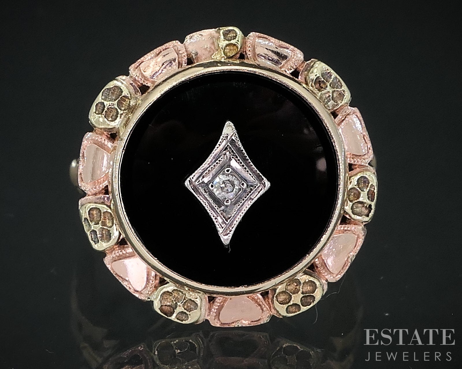 Antique Victorian 10k Tri Colored Gold Black Onyx & Diamond Ring 4.1g i18649