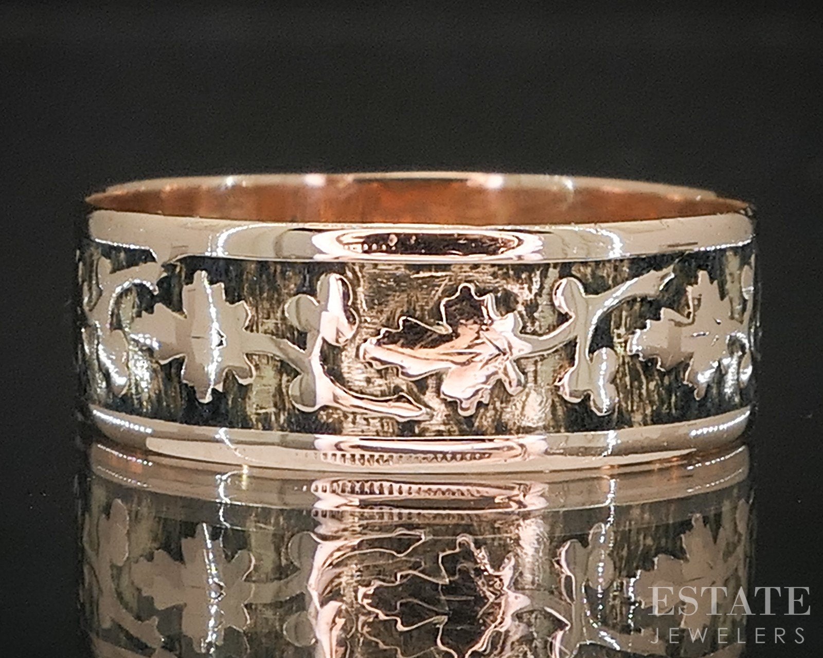 Antique Victorian 10k Yellow Gold 6mm Grape Leaf Cigar Band Ring 1.7g p15399